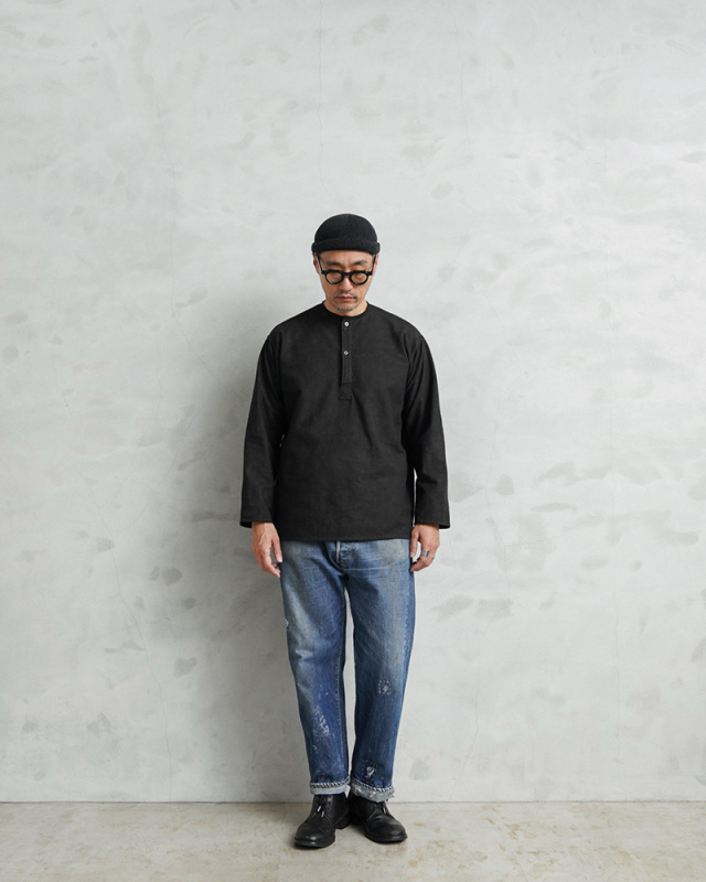 | 商品名 | 実物 新品 デッドストック ロシア軍 70s ヘンリーネック スリーピングシャツ UNEVEN DYEING BLACK染め |