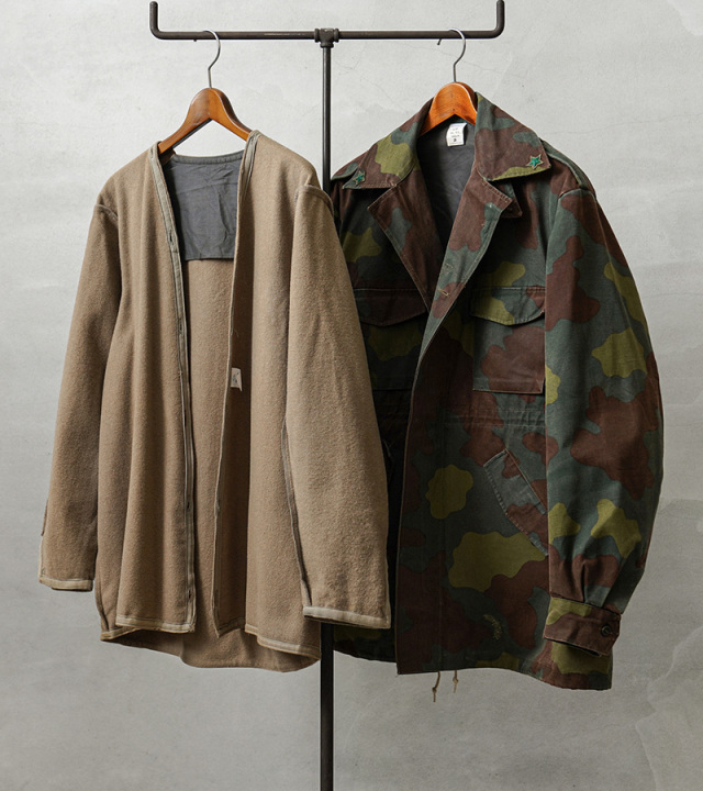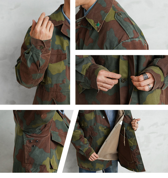 | 商品説明 | リジェクト 訳あり品 実物 USED イタリア軍 フィールドジャケット サンマルコカモフラージュ ライナー付きのご紹介です。 イタリア海軍所属の精鋭部隊サンマルコ海兵隊にて採用されていた迷彩パターン「サンマルコカモフラージュ」のフィールドジャケットが入荷しました。 1980年代後半から2000年代前半まで採用されていたフィールドジャケットで、イタリア海軍の水陸両用部隊の海兵隊が主に使用していました。ガッシリとした質感のヘヴィなコットンツイルが使用されたジャケットと、ウール製のライナーが付属していますので様々な季節に使用していただけますし、ライナー単体での着用も可能です。 前立てはボタン留めの比翼仕立て、フロントは4ポケットデザインで、フラップの内側でボタン留めする仕様で、胸ポケットにはマチが設けられています。ウエスト部分のポケットは斜めに配置された使い勝手の良いディテール。ウエストの内側と裾部分にはドローコードで絞れるデザインです。脇にはベンチレーション付きで、襟下にはチンストラップ付きなので寒い日には首元まで閉じて防寒性を高めます。 袖裏から肩部分には滑らかなコットン系の裏地が付けられています。襟にはイタリア軍のアイテムに見られる星柄の装飾が付属している場合があり、古くからイタリアのエンブレムなどに用いられてきた象徴的なデザインです。 着込むほどにより雰囲気の良くなるコットンツイルはヴィンテージのようなアタリや、フェードしていく経年変化も楽しみな素材感で、2000年初頭に生産終了している希少な1枚です。 ボタン欠損や破れ、ライナーのサイズ違い、表地などの目立つ箇所へのマーキング等、不具合のある商品を選別しております。多少のリペアを施していただいてからの着用、もしくはリメイク資材としてもおすすめです。ファーストクオリティの品質を強くお求めの方は念の為ご購入をお控えくださいますようお願い致します。 |