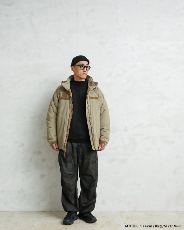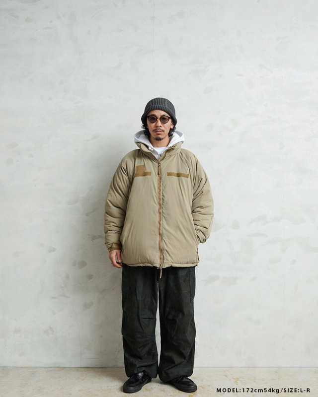 冬の定番ミリタリーアウターとして絶大な人気を誇る米軍のECWCS GEN III LEVEL7 ジャケット。 米軍に納入実績のあるTENNIER INDUSTRIES社が生産するミルスペック規格に準じた民間向けに販売されたモデルが入荷しました。 米軍 ECWCS 第三世代(ジェネレーション3)は7種類のトップスと5種類のボトムから構成された、様々な気候やシチュエーションに対応するレイヤリングシステムです。LEVEL7はレイヤリング最終防寒アウターとして位置づけられており、収納式のフードや、フロントのベルクロデザイン、ポケット内蔵の裾ドローコードやエルボーパッチなどのディテールが特徴です。 表地は代表的なURBAN GREYと異なり、柔らかい質感に撥水性と強度を備えた生地を採用。 また、中綿素材には従来のモデルで採用されていたPrimaloftに対し、Climashield® APEXを採用しています。 1平方ヤードで6ozと非常に肉厚な中綿を使用しており、極寒地での着用を想定したアウターとして非常に頼もしいクオリティーとなっています。 TENNIER INDUSTRIES社は米軍への納入はもちろん、退役軍人やアウトドアの愛好家に向けて、アレンジを加えたミリタリー、タクティカルアイテムを多く手がけています。 機能性とデザイン性を兼ね備えた一着をお探しの方に、ぜひおすすめしたい逸品です。 MADE IN USA |