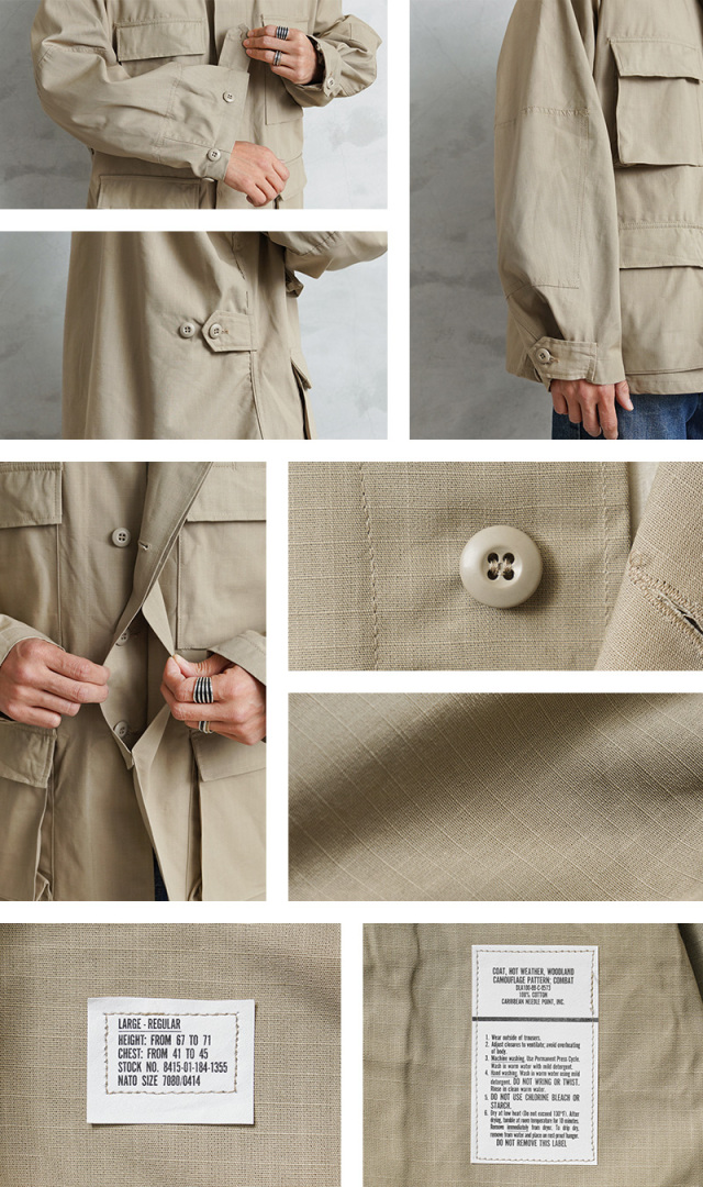 | 商品状態 | 新品未使用デッドストック ※様々なコントラクターが製造したデッドストック品のため、タグやラベルのデザインや表記は異なり、マーカーなどで文字が消されている場合もございます。実物を製造していた米軍納入業者が工場を稼働させるため、コマーシャルモデルを作る際に、実物のウッドランドのBDUジャケットやパンツなどのタグやラベルを使用している場合があり、自国製造の納入品と同じ工場で製造されているためにMADE IN USAという記載をしています。商品の状態についてご指定いただくことは出来ませんので予めご了承ください。 |