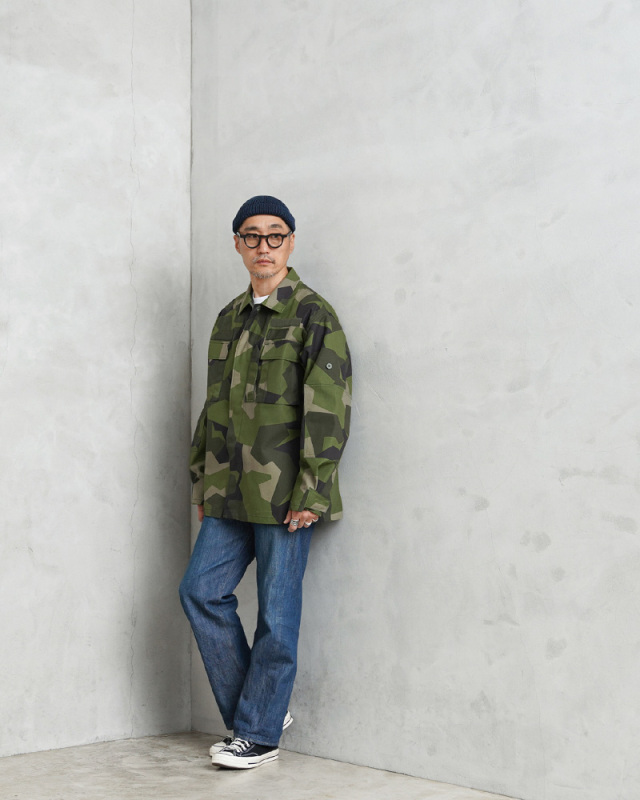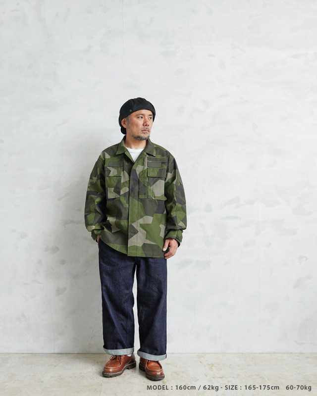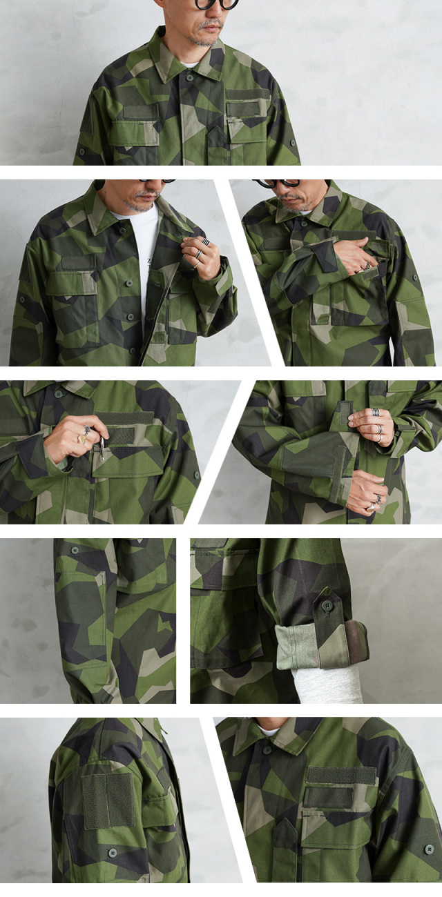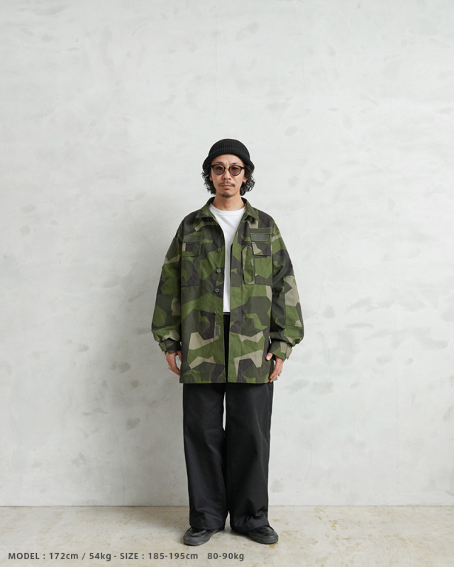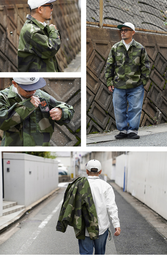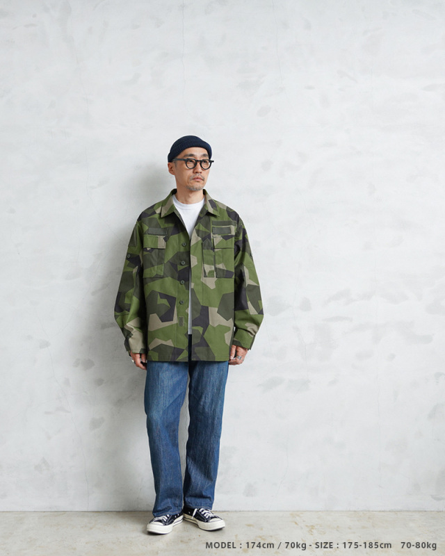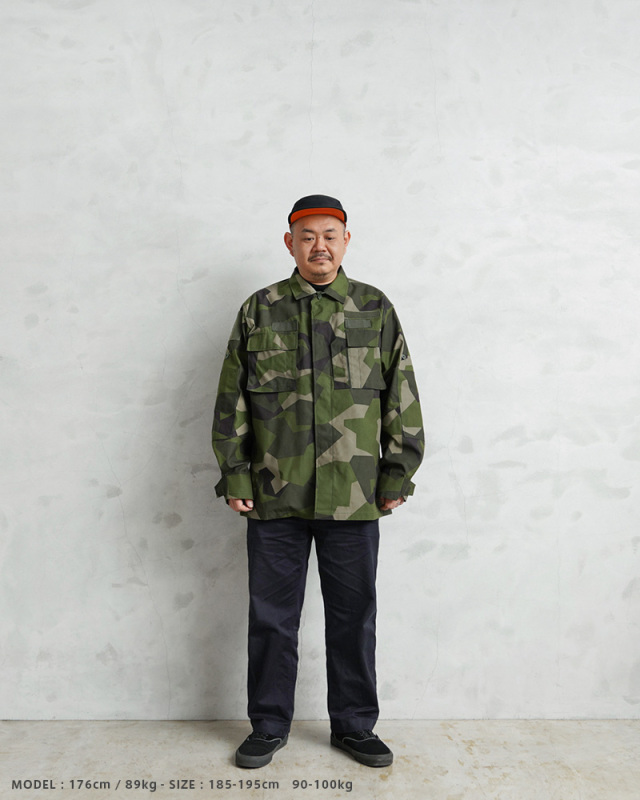 | 商品説明 | 実物 新品 デッドストック スウェーデン軍 M-90 フィールドジャケット スカンジナビアカモのご紹介です。 スカンジナビアカモ(M90パターン)はスウェーデンの広大な森林地帯をモチーフにした迷彩柄で、幾何学模様で構成される効果的なカモフラージュです。 1980年代後半に実戦に導入され、1990年代後半までにスウェーデン全軍によって採用されました。コットンポリの程よい厚みのあるジャケットで、春、秋、冬と日本の気候にも適しているジャケットです! M-90フィールドジャケットにも数種類が存在しますが、こちらは「M90L」という名称で、全く薄くはない生地ですが、気温の低いスウェーデンではライトウェイトタイプのフィールドジャケットとして扱われている、最も入手が困難とされるアイテムです。 ベルクロ開閉のフラップポケットは左右ともにペンホルダーが付属、胸の中心付近には部隊章を付けるループが付き、その他にも、肘の補強、調節可能な袖口や、袖の内側に備わっているストラップを使用し、ロールアップして袖のボタンに留めて着用が可能な作りなど、ミリタリーならではのディテールです。 スウェーデン軍のシンボルとして兵士からも愛されているカモ柄は多少の刷新がされながらも現在も使用されています。その為、放出時にはフラッグパッチや様々なラベルなどは取り外され入荷しています。 長年にわたり様々なブランドがサンプリングしたことでも知られるカモ柄で、なかなか手に入れることのできないグラフィカルなデザインのフィールドジャケットです。 |
