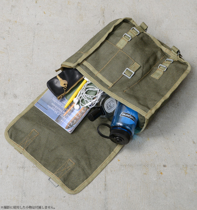 ポーランド軍で実際に使用されていた、ショルダーストラップ付のブレッドバッグ。 ブレッドバッグとは、元々兵士が身の回りの日常品を入れておくためのバッグとして使われていたもので、内部には仕切りと多数のポケットがあり、コンパクトでスッキリした見た目に反して非常に収納力があります。 素材は目が粗くザラザラとした肌触りが特徴的なキャンバス地を使用。バッグの上部には持ち手が付いており、ショルダーストラップもあるので、手提げと斜め掛けの2WAYで使用可能です。 丈夫かつシンプルなデザインはデイリーに取り入れたくなるアイテムです。 ※撮影に使用した小物は付属しません。 |