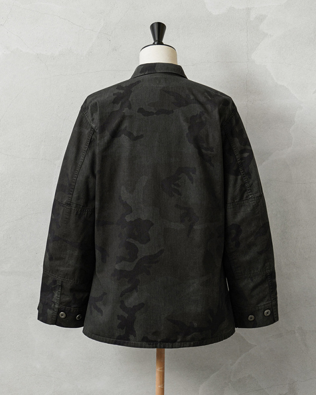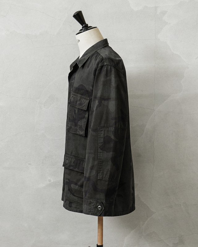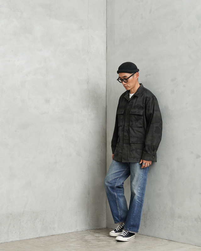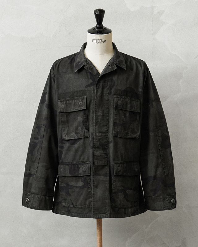 | 商品説明 | 実物 USED 米軍 BDU WOODLAND CAMO ジャケット 後期型 ノンリップ BLACK染めのご紹介です。 制式名称:COAT,WOODLAND CAMOUFLAGE PATTERN,COMBAT 1981年より約30年以上にわたり全米軍で使用され、米海兵隊では2005年、米陸軍では2008年、米空軍では2011年、米海軍では2012年まで使用されたウッドランドカモ柄のBDU(野戦服)です。その後もアメリカ陸軍特殊部隊のグリーンベレーではウッドランドのBDUジャケットが限定で継続使用されていました。 この希少なアイテムを使用し、国内の職人に依頼し製品染めを施しました。本来の迷彩柄を残すようにBLACK染めを施し、オリジナルのウッドランドデザインのうっすら浮き出ている迷彩が雰囲気抜群な仕上がりです。 こちらの後期型の特徴としては、1995年以降に生産されたモデルで、胸ポケットとウエスト部分のポケットのマチが外側に設けられており、襟の形状が中期型以降は小さくなり、袖口の調節用タブは前期、中期、後期になるにつれて幅広で短い形状へと変更されました。 BDUとは「Battle Dress Uniform」の略で、戦闘服のことであり、BDUジャケットの特徴とも言える4つのフロントポケットは2重構造のフラップがついており、ボタンが外に露出しない仕様です。4箇所のポケットはマチ付きで立体的なデザインになっています。フロントは比翼仕立てでボタンが引っかからない仕様、肘部分には補強のためにあて布がされた2重構造、袖はボタンで調節可能、左胸のポケットにはペンホルダーが備わっており、細部にまでこだわり抜かれたデザインとなっています。 NYCO(ナイコ)と呼ばれるコットン、ナイロンの混紡素材が使用されており、リップストップに比べ、こちらのノンリップのツイルタイプは放出される機会が少ない印象です。 米軍のアイテムとして代表的なBDUジャケットですが、近年放出が少なくなり、年々希少価値が上がり、入手することが非常に困難になってきたアイテムの1つです! 新品には出せない風合いのよい生地のアタリやフェード感などが、他と被らない1点物のような魅力を感じていただけると思います。これから更に着込んでいただくことにより様々な表情を見せてくれる1枚です。 |
