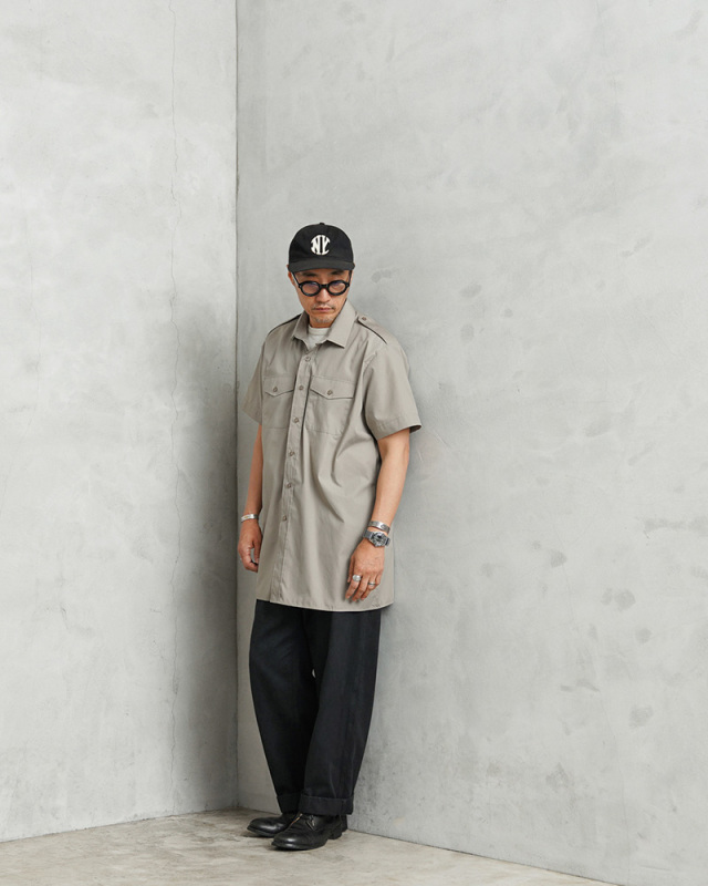 | 商品説明 | 実物 USED イギリス軍 RM RAF & ARMY ショートスリーブ ドレスシャツ STONEのご紹介です。 制式名称:SHIRT,MANS,Stone,Short Sleeve,RM,RAF & ARMY イギリス軍から放出されたイギリス海兵隊(RM=Royal Marines)、イギリス空軍(RAF=Royal Air Force)及びイギリス陸軍(British Army)が着用する「STONE」というグレーカラーのシャツが入荷しました。 1990年代に採用されたドレスシャツで、様々な年代のアイテムが入荷しています。比較的温暖な気候で将校および下士官が着用する制服になります。 素材にはT/Cブロードという目の詰まった平織りの生地が使用されています。薄手の生地ながら、緻密に織られていることで耐久性が高く、ハリがあります。洗濯を繰り返しても生地がへたりにくく、滑らかで肌触りが良く、高級感のある上質な素材です。 コットンとポリエステルが使用された素材は綿の特性である吸水性と肌触りの良さと、ポリエステルの特性であるシワになりにくく速乾性に優れている特徴を持っています。 フロントにボタン留めのフラップポケットが備わったシンプルでベーシックなデザイン。ボックスカットのフラットな裾のディテールはタックインでもタックアウトで着ても良いデザインになっています。 クラシックな英国らしい仕様はフォーマル、ビジネス、カジュアルシーンまで幅広くこなしてくれる一着です。 |