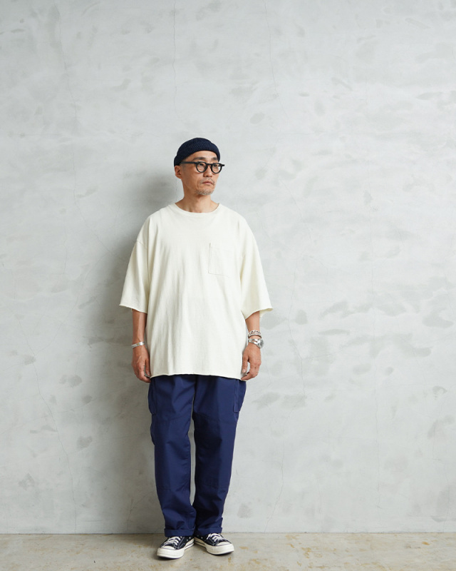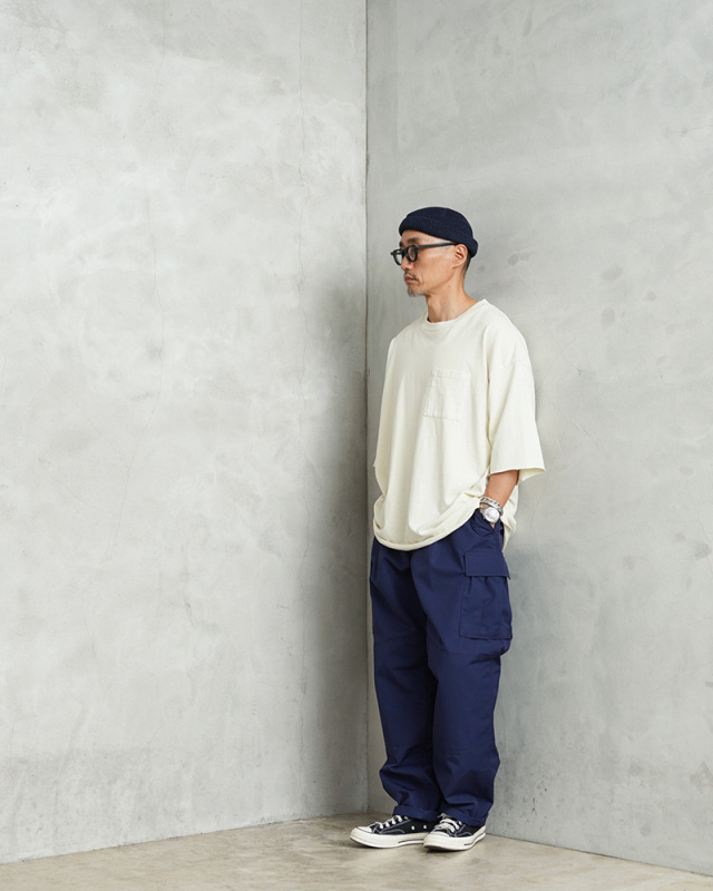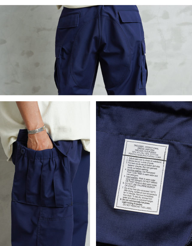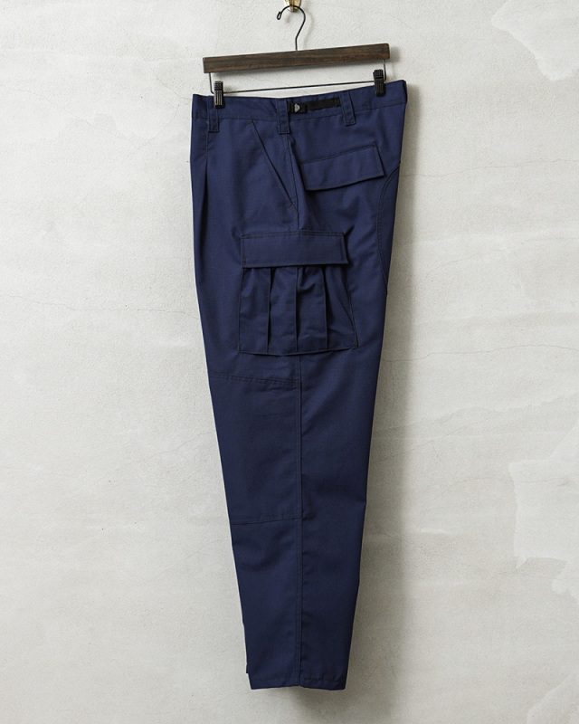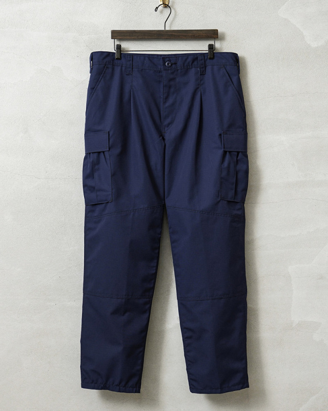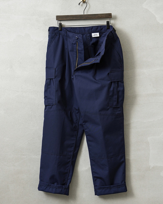 | 商品説明 | 実物 新品 デッドストック 米軍 U.S. COAST GUARD ODU オペレーション カーゴパンツ 刺繍なし のご紹介です。 アメリカ軍の一部門でもある米国沿岸警備隊(U.S. COAST GUARD/USCG)で使用されているOPERATIONAL DRESS UNIFORM(オペレーショナル ドレス ユニフォーム)通称ODUと呼ばれるパンツで、沿岸警備隊とはいえ、世界各国の海軍の能力と規模に匹敵する、最大かつ最も強力なのが米国沿岸警備隊です。 通常、カーゴポケットのフラップにはアンカーマークのU.S. COAST GUARDのロゴが刺繍されていますが、こちらは刺繍が入ってない珍しい個体になります。米軍のBDUパンツのようなデザインで、サイドポケット、バックポケット、カーゴポケットがそれぞれ2つずつ配置されています。バックポケットとカーゴポケットには2重構造のフラップが付いており、ボタンが外に露出しない仕様で、カーゴポケットは正面と底部分にもマチ付きで立体的な構造になっています。カーゴポケットのボタンは1箇所ですが、ゴムシャーリングが付属することで荷物の落下を抑える独特なデザイン。 ウエスト部にはベルトループと、両サイドにアジャスターが付いてますので細かい調整が可能となっています。またヒップと膝部分には生地を2重にする事で補強が施されており、ガシガシ使っても安心です。 僅かにテーパードした程よく太めの綺麗なシルエットなのでどんなトップスにも合います。またロールアップすることで変化を持たせて着用することができる万能な1本です。 ナイロン×コットンを使用したリップストップを使用しており、引き裂きに強く軽量ながら高強度という優れた素材のリップストップは耐久性が高く、また洗濯などで縮むこともなく、シワにもなりにくいタフな仕様で長く着ていただけます。 ブルーに近いネイビーが使いやすく、手に入りにくいカーゴパンツです。この機会に是非どうぞ。 |