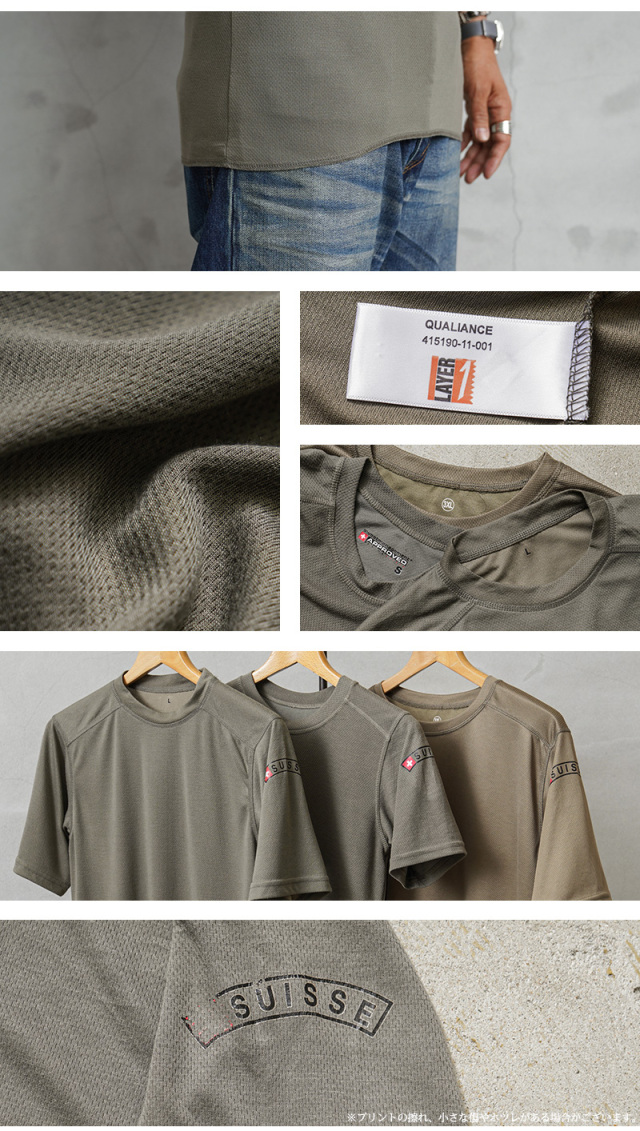 | 商品説明 | 実物 USED スイス軍 ショートスリーブ Tシャツ MESHのご紹介です。 スイス軍の速乾性・通気性に優れたメッシュ構造生地の半袖Tシャツです。 シワになりにくく、洗濯してもすぐに乾くポリエステル素材。細かなメッシュ状の生地で、軽量かつストレッチ性が高かく、肌に優しい滑らかな質感です。 体に添うややタイトないシルエットとシンプルなデザインは、クラシックなミリタリーTシャツそのもの。スイスの公用語の一つであるフランス語で書かれた左肩の「SUISSE」の文字と国旗がアクセントになっています。 ベースレイヤーとしても、一枚でも年中活躍するTシャツは、何枚あっても困りません。 デイリーウェアとしてはもちろん、アウトドアやスポーツの際にも。柔軟性が高く、体にぴったりフィットする素材感は、鍛え上げられた肉体を持つトレーニーにも特にお勧めのアイテムです。 |