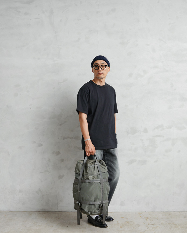 制式名称:STUFF SACK COMPRESSION,LARGE 米軍の3層構造レイヤード・システムを採用した寝袋の収納用バッグです。 本来は寝袋をコンパクトにまとめて収納するものだけに、薄くて軽量。上部にハンドルがあり持ち運びにも違和感のない造りになっています。 丈夫なナイロン素材で特徴的なドラム缶型。フラップの下は、ドローコードで絞れるようになっていて、荷物が露出する心配もありません。 底部には、湿気や空気を逃がすエアホールが備わっています。 ポケットなどのないシンプルな構造なので、寝袋はもちろん、ラグやブランケットなど大き目のものも中で引っかかることなく収納可能。 外側に取り付けられたウェビングやバックルが、サイズ感の調整や荷物の固定に役立ちます。 軍用特有の絶妙なカラーリングと無骨な雰囲気。旅行やアウトドアシーンでのサブバッグとしてや、ポーチなどを使って荷物を仕分ければワンデイパック・デイリーバッグとしても充分活躍する汎用性の高いアイテムです。 ※撮影に使用した小物は付属しません。 |