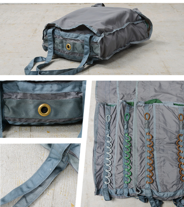 | 商品説明 | 実物 新品 デッドストック チェコ軍 OVP80 パラシュートバッグ コンディションBのご紹介です。 チェコスロバキア軍で使用されていた、航空機から降下する際に使用するパラシュートを包むためのコンテナバッグ。 本来はコンテナとしての役割が強いため、メインの収納スペースは、仕切りやポケットのないシンプルな内装でブランケットや服など大き目の荷物も引っかかりなくスムーズに収納可能です。 珍しいグレーのボディに青みがかったテープ部分、ゴムバンドの様子などが見た目にも個性的で目を惹くアイテム。ハンドルやショルダー紐が無いため使い方は自由で、収納カバーとしてや大き目の手持ちバッグとして、インテリアとしても雰囲気抜群です。 タフで機能的な本物のミリタリーバッグは、旅行やキャンプ、アウトドアにはもちろん、災害用の避難バックとしても最適です。 ※撮影に使用した小物は付属しません。 |