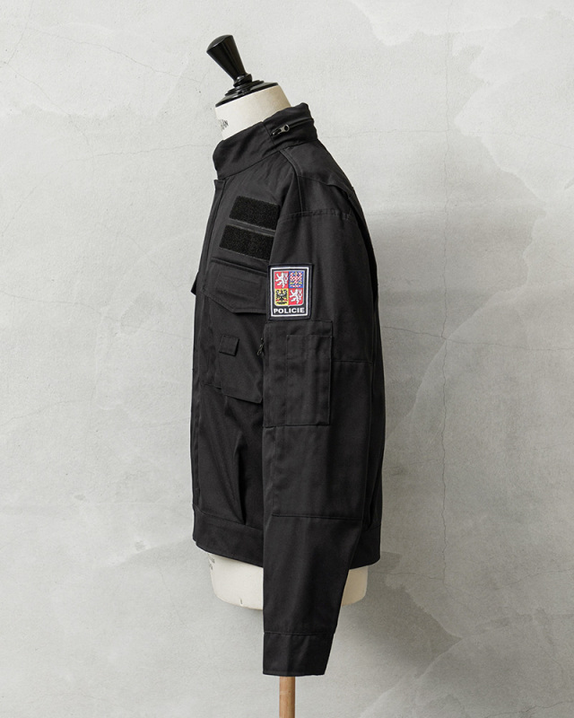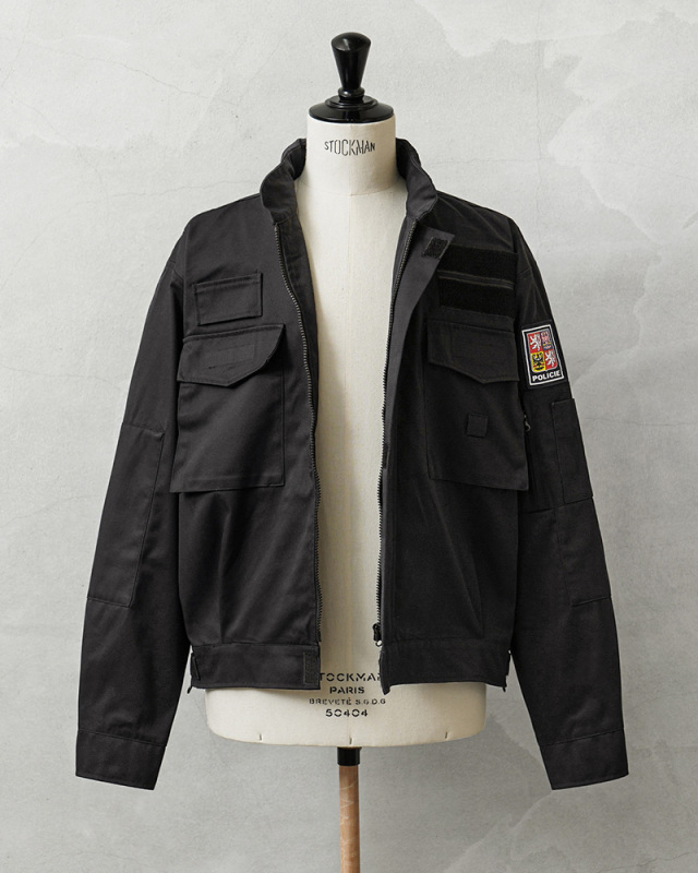 | 商品説明 | 実物 新品 デッドストック チェコ警察 STATE POLICE(ステート ポリス)ジャケット NAVYのご紹介です。 チェコ共和国のSTATE POLICE(州警察)は交通指導や取締りを行う警察とは異なり、国家全土を管轄する武装治安部隊としての役割を担っています。その為、ミリタリージャケットにも通ずるデザインで、ショート丈ボックスシルエットの魅力的なディテールのジャケットです。 フロントはベルクロとジッパーで開閉する比翼仕立てに、ベルクロ開閉のマチ付きの胸ポケットが2つと左上腕にもジッパー付きのユーティリティポケットとペンホルダーが付属しています。左胸ポケットには警察バッジを付けるループ、右胸ポケット上の大きなループにはベレー帽を通して持ち運ぶ際に使われることが多い部位です。 洗練されたシンプルなスタンドカラーの内部には雨を防ぎやすい薄手のナイロン製フードが収納されています。前後に様々なサイズや形状のベルクロパネルが付属している場合も多く、背面のアクションプリーツは背中全体に備わっていることで可動域が広く設けられた機能的なデザインです。 ジャケットのサイドにはベルクロアジャスターと、ベンチレーションとして体温調節を行いやすいサイドジッパーが付属しており、脇下にも4つのホールが蒸れを軽減します。 コットンにポリエステルを混紡することでより軽く、より丈夫で耐久性のある生地になり、コットンの吸水性やナチュラルな雰囲気を残しつつ、ポリエステルのシワになりにくく、縮みにくいというイージーケア素材を使用したジャケットです。シンプルながらも存在感があり、コーディネートの主役になれるアイテムです。 |