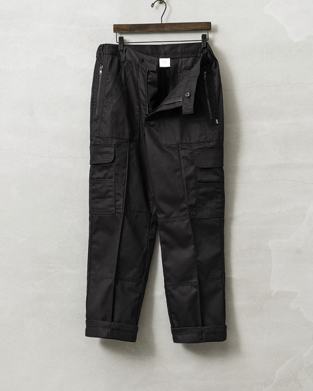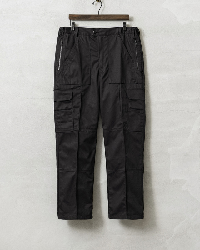 | 商品説明 | 実物 新品 デッドストック イギリス警察 カーゴトラウザー ブラック ウエストゴム入りのご紹介です。 イギリス警察のユニフォームとして製造されたカーゴトラウザーになります。ベイカーパンツのようなフロントのポケットに、その横にはビスロンジップで開閉するポケットが付属しています。サイドのカーゴポケットも簡単にベルクロ開閉できるポケットに、小型ポケットも外側に付属。2つのバックポケットも付属しています。 綺麗なストレートシルエットで、センタークリースを維持する為にクリースステッチ加工が施されています。機能的ながらもコーディネートに使いやすく、シルエットも太すぎず細すぎずのちょうどいい感じなので、ロールアップしてスニーカーやローファーなどと合わせるのもオススメです。 丈夫でイージーケアできるポリコットンを使用し、フロントは使いやすいジッパーフライ仕様。ウエストサイドにはゴム入りで適度にフィットします。警察用のアイテムだけに実用性と機能性、耐久性に優れたデザインです。 |