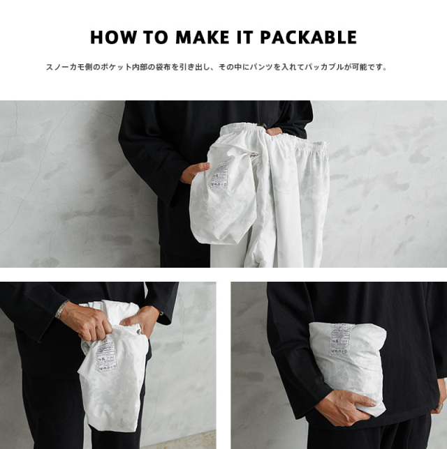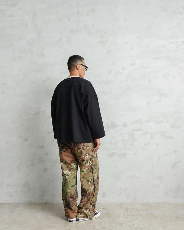 ・発色に関しては、唯一無二。 ・止水ジップ、ベルクロの作りが頑丈。 ・ベジタトカモの生地がタフ。 難点 ・股上がかなり浅い(今まで着た軍パンの中で一番ローライズでもあった)。 ・ポケットがほとんどないのが、若干使い勝手が悪く感じた(個人差有)。 ・スノーカモ側の布を内側にして着た時、インナーを着ても引っ付く(洗濯しても変わらなかった)。 ・ベジタトカモの生地に比べ、スノーカモの生地の耐久性が少し不安。 プロダクト全体を通して カラーとディテールは素晴らしいが、サイズ感と使い勝手に注意。 特に、総丈と股下のサイズ表はよく見て買うといいかもしれない。 |