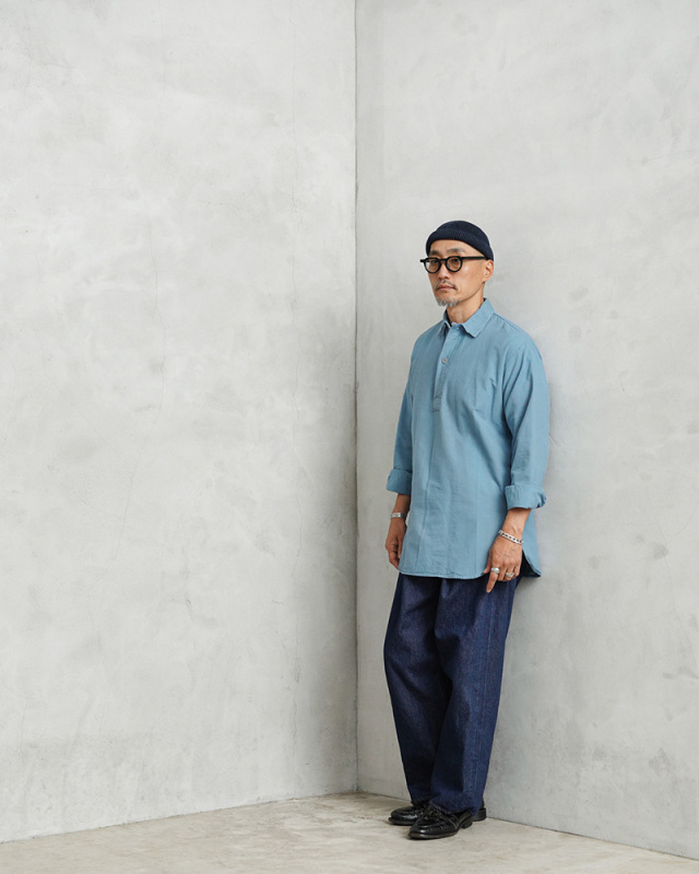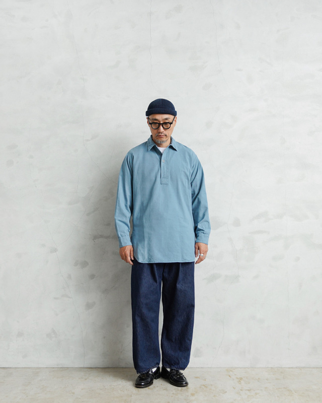 | 商品説明 | 実物 USED スウェーデン軍 M-55 CIVIL DEFENSE プルオーバーシャツ サックスブルーのご紹介です。 スウェーデン軍実物放出品のCIVIL DEFENCE(民間防衛)プルオーバーシャツです。 CIVIL DEFENCE(スウェーデン語:Civilforsvar)は、社会の危機的状況への備えを出発点とし、戦時中には国民を保護し、武力攻撃に対抗する軍の能力に貢献することを目的としています。 プルオーバーが非常にセンスが良い一着で、ロングレングスのヨーロッパらしい繊細でモードな雰囲気が魅力でもあります。着合わせやすさとコーディネートの馴染みが良いのが特徴の1つです。 シンプルなソリッドボディに、円形のグレーボタンが程よいアクセントになっており、バランスの良い佇まい。コットン素材が着込んでいくことでいい感じの経年変化が出ていくのも楽しめます。 プルオーバーシャツの裏地は若干、微起毛していますので春先や秋口にもさらっと着ていただけますし、袖をロールアップして着ても印象が変わり、レベルの高い着こなしに。着丈の長さを生かしてグランパシャツのように着てもかっこいいと思います。フロントからサイドにかけて大きくラウンドカットした裾周りで、襟元のボタンはトップボタンがループになっている仕様です。 1955年から1990年代まで採用されていたということもこのアイテムが洗練された使いやすいアイテムだという証明でもあると思います。CIVIL DEFENCE(民間防衛)の爽やかでクラシカルなプルオーバーシャツです。 |