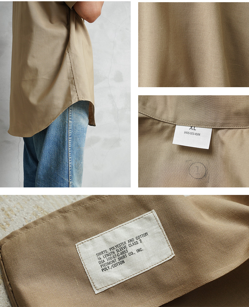| 商品説明 | 実物 新品 デッドストック 米軍 USMC 1960’s ビンテージ ショートスリーブ オフィサーシャツのご紹介です。 制式名称:SHIRTS,POLYESTER AND COTTON 1/4 LENGTH SLEEVE CLASS 2 1960年代、ベトナム戦争時代の米海兵隊(United States Marine Corps)で使用されていた貴重な半袖カーキシャツが入荷しました。 さらっとした肌触りの綿とポリエステルの混紡素材。フラップタイプの胸ポケットが左右に設けられた癖のないシンプルな仕様になっています。 ウエスト部分をシェイプし、肩から胸、腕にかけて体にフィットするように作られたテーラードフィット。クラシックで洗練された印象を与えることができます。 長く米軍内で使用される普遍的なデザインで、一枚持っておくと重宝する半袖シャツ。カジュアルから少しきれいめなコーディネイトまで、幅広く活躍してくれます。歴史的背景を感じるビンテージコレクションのひとつとしても手に入れるべきサープラスアイテムです。 |
