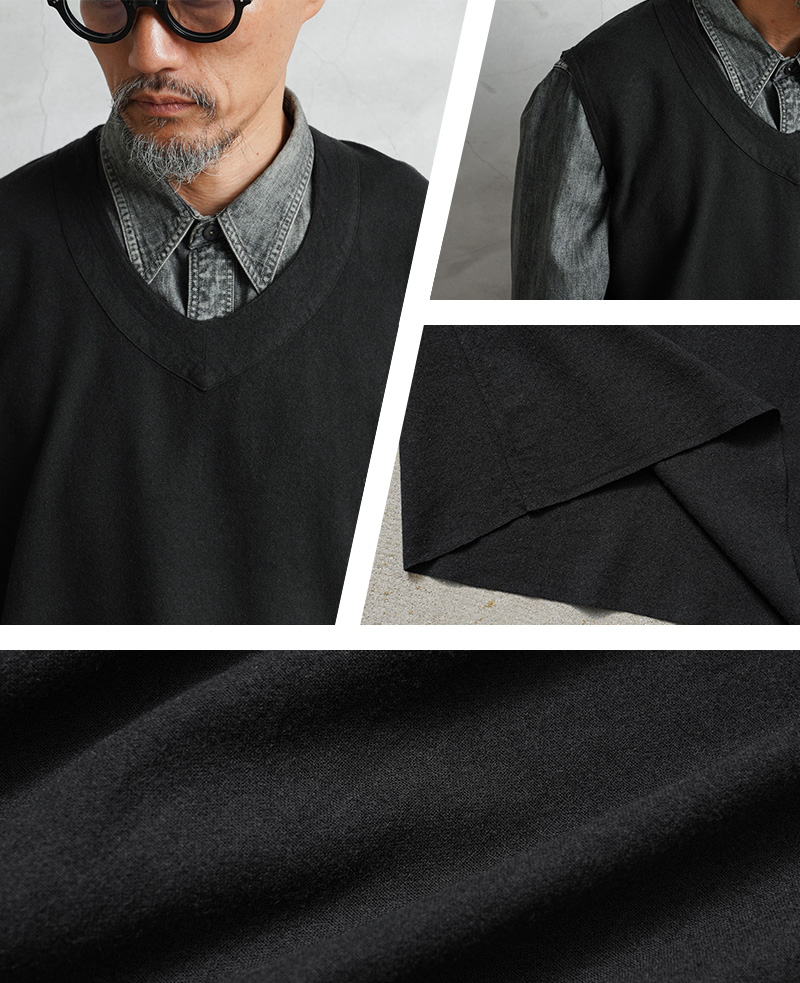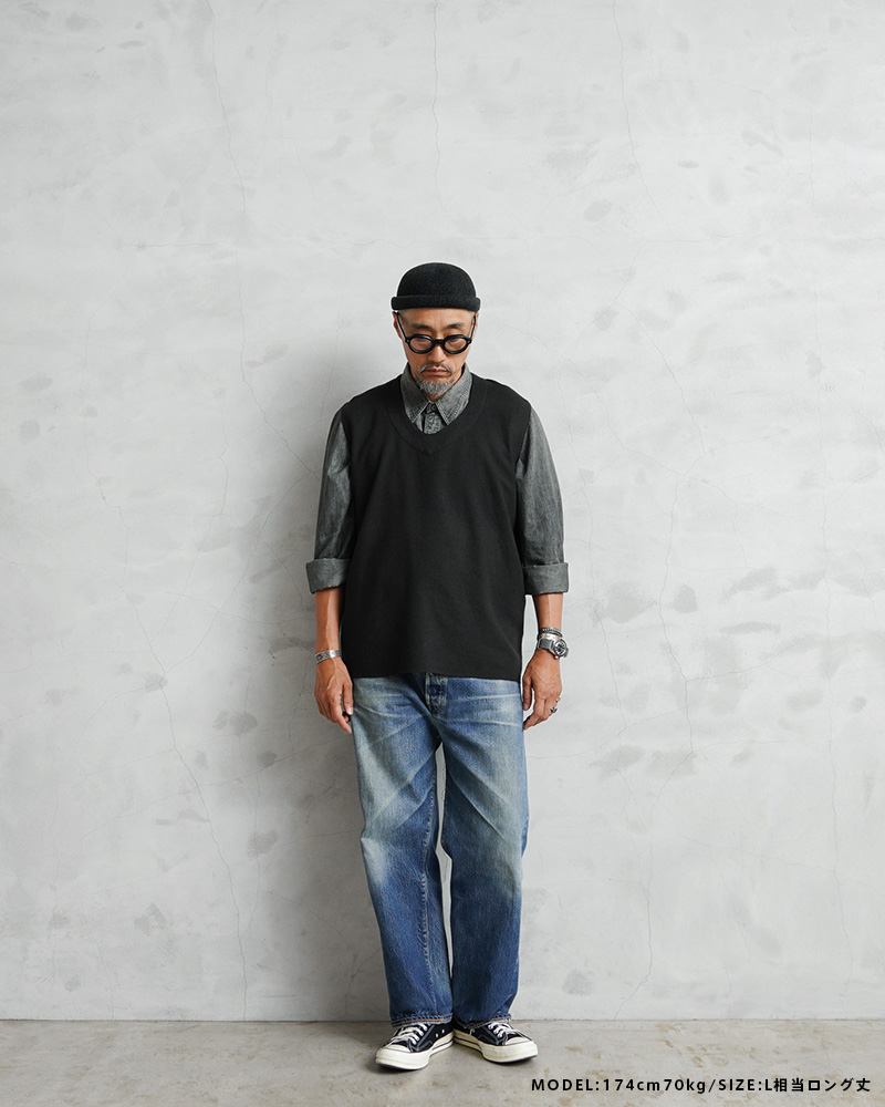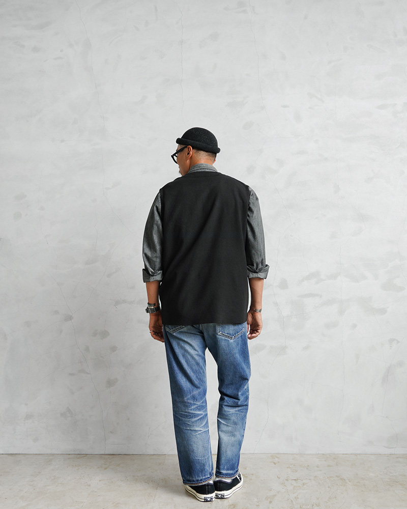 フランス軍実物放出のリネン生地を使用したベストのBLACK染め。 リネン生地独特のシャリ感があり、やわらかい着心地のベスト。元々ナチュラルだったカラーを、丁寧に染職人の手によってBLACK染めしています。 フランス軍らしいスタイリッシュで洗練された雰囲気の漂う一枚。リネンの染色ならではの風合いと、汎用性の高いブラックカラーは男女問わず幅広く着用可能です。 ざっくりとしたシルエットとシンプルなデザインで、そのままでもレイヤリングの一部としても、年間通して楽しむことのできるアイテムです。 |
