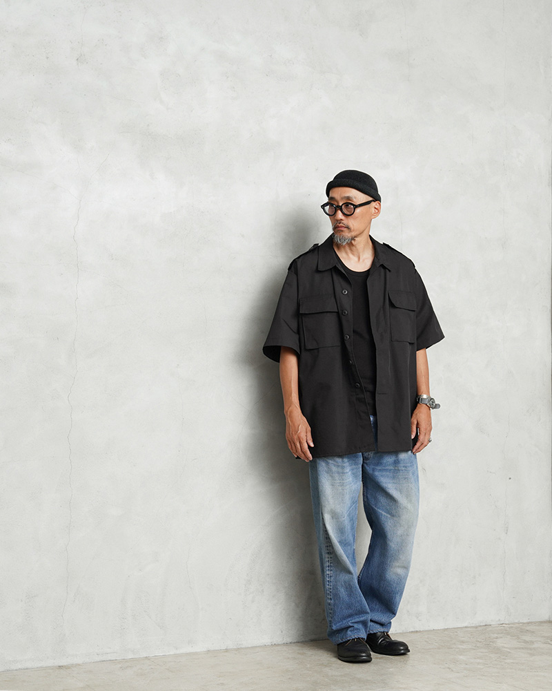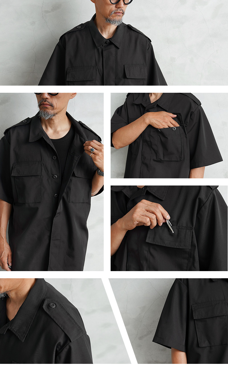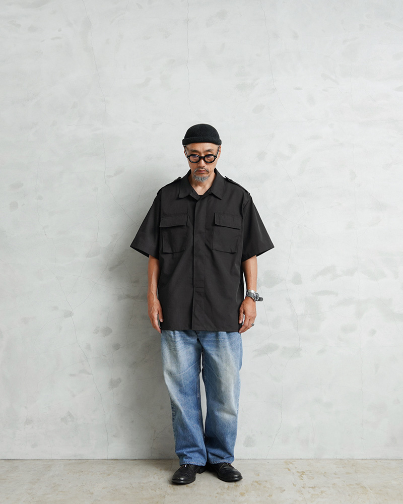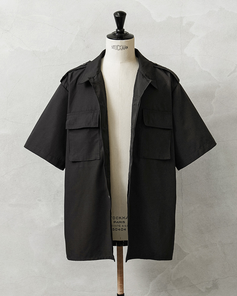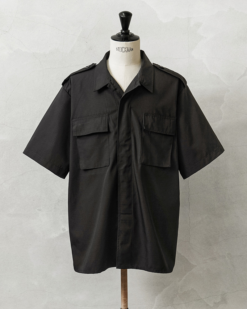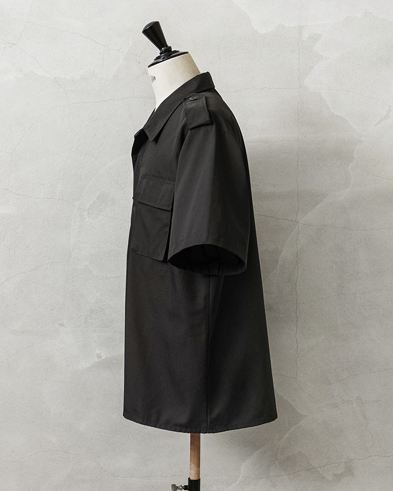 デッドストックの状態で眠っていたアイテムが長い年月を経て発見された、軍用製品のコントラクターが製造したMADE IN USAのS/Sシャツで、半袖シャツ仕様の春夏にも大活躍の快適な1枚です。U.S.COAST GUARD(米国沿岸警備隊)ODUジャケットに見られるフロント2ポケットのデザインで、ボタン開閉の比翼仕立てにフラップの付いたフロントポケット、左胸のポケット内部にはペンホルダーが付属しています。