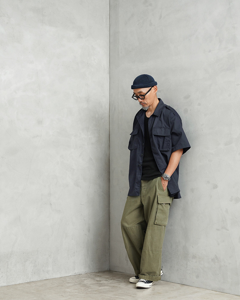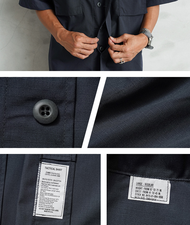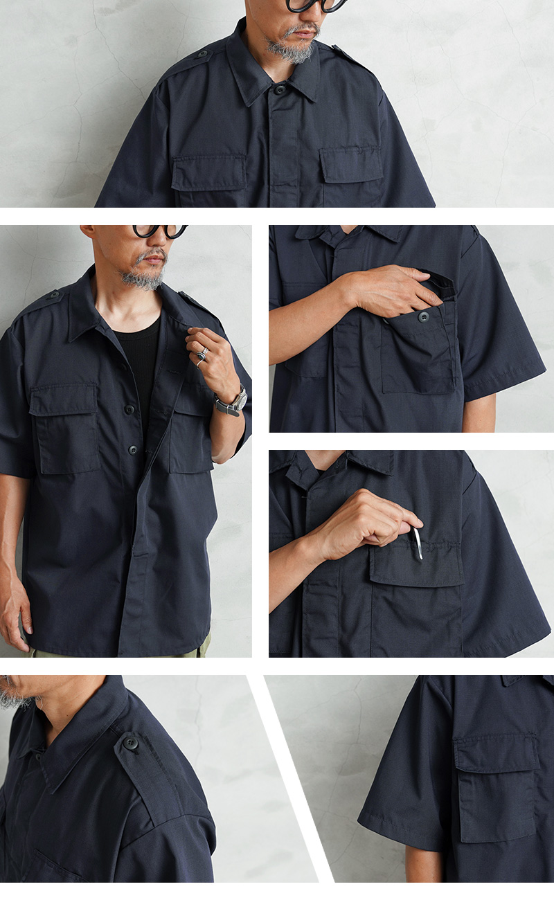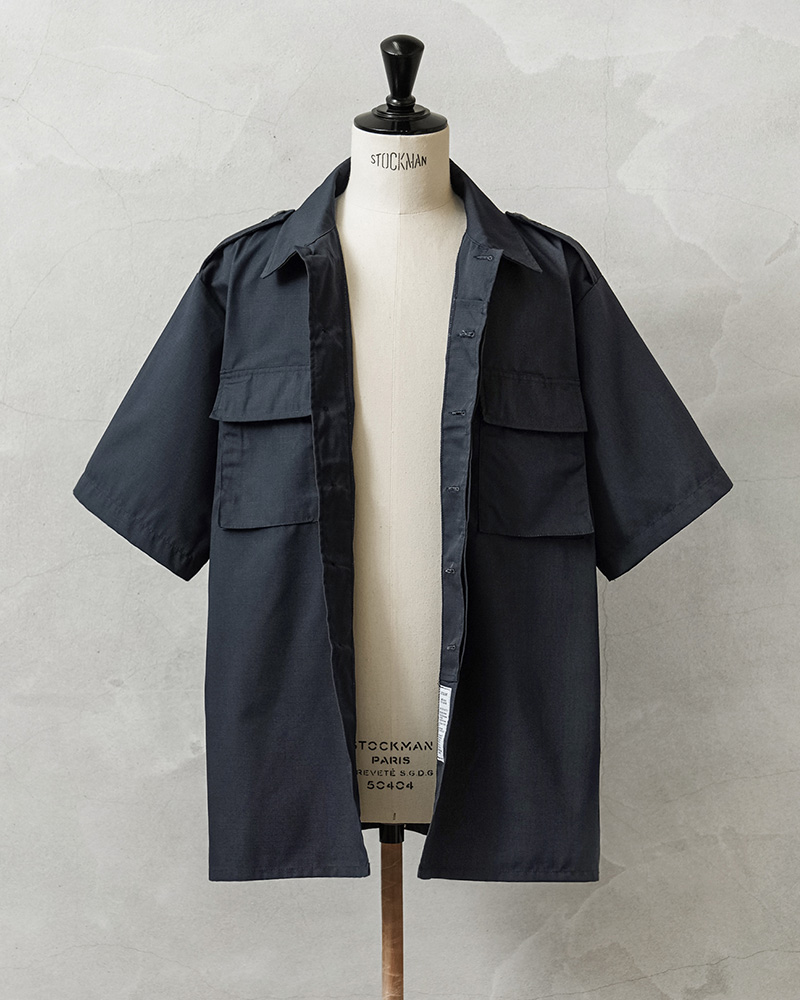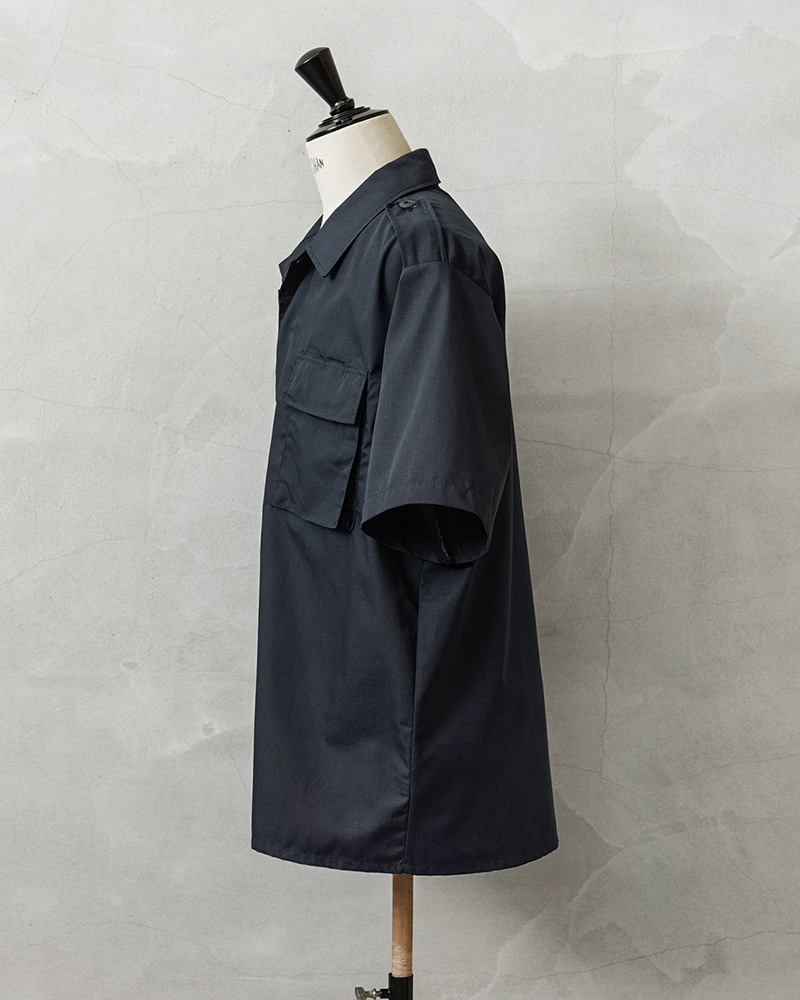 デッドストックの状態で眠っていたアイテムが長い年月を経て発見された、軍用製品のコントラクターが製造したMADE IN USAのS/Sシャツで、半袖シャツ仕様の春夏にも大活躍の快適な1枚です。U.S.COAST GUARD(米国沿岸警備隊)ODUジャケットに見られるフロント2ポケットのデザインで、ボタン開閉の比翼仕立てにフラップの付いたフロントポケット、左胸のポケット内部にはペンホルダーが付属しています。