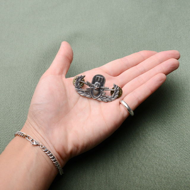 米軍で爆発物処理の精鋭たちに授与されるEODバッジの入荷です。 米軍の軍事章であり、爆発物処理(EOD)技術者として、特別な訓練を受けた軍人を表彰するものです。「EOD章」と呼ばれるこの勲章は、アメリカ陸軍、空軍、海軍、海兵隊によって授与されます。EOD章は、アメリカ国防総省傘下の5軍種すべてに授与される唯一の職業章です。1950年代に初めて制定されたEODバッジは3段階に分かれており、経験と訓練に応じて昇格するようになっており、こちらはシニア(Senior)モデルとなっております。