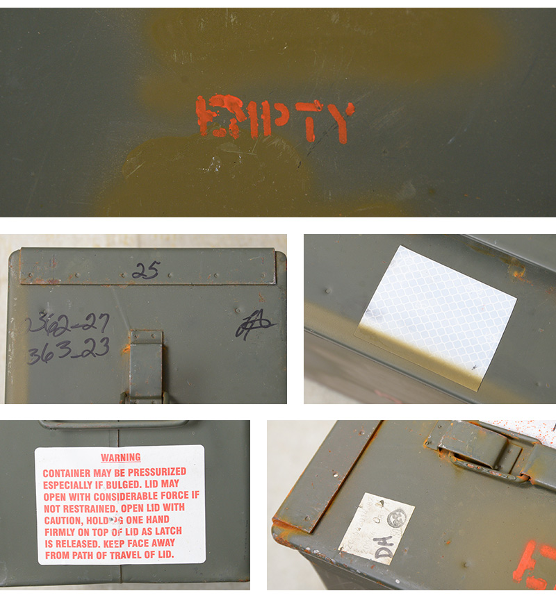 ※軍放出品のため、放出の際の上塗りやステンシル、シール跡などがございます。また、色合いやステンシルの違いや、経年による傷やサビなどがある場合がございます。コンディションについてご指定を頂くことは出来ません。予めご了承下さいますよう宜しくお願い致します。 |