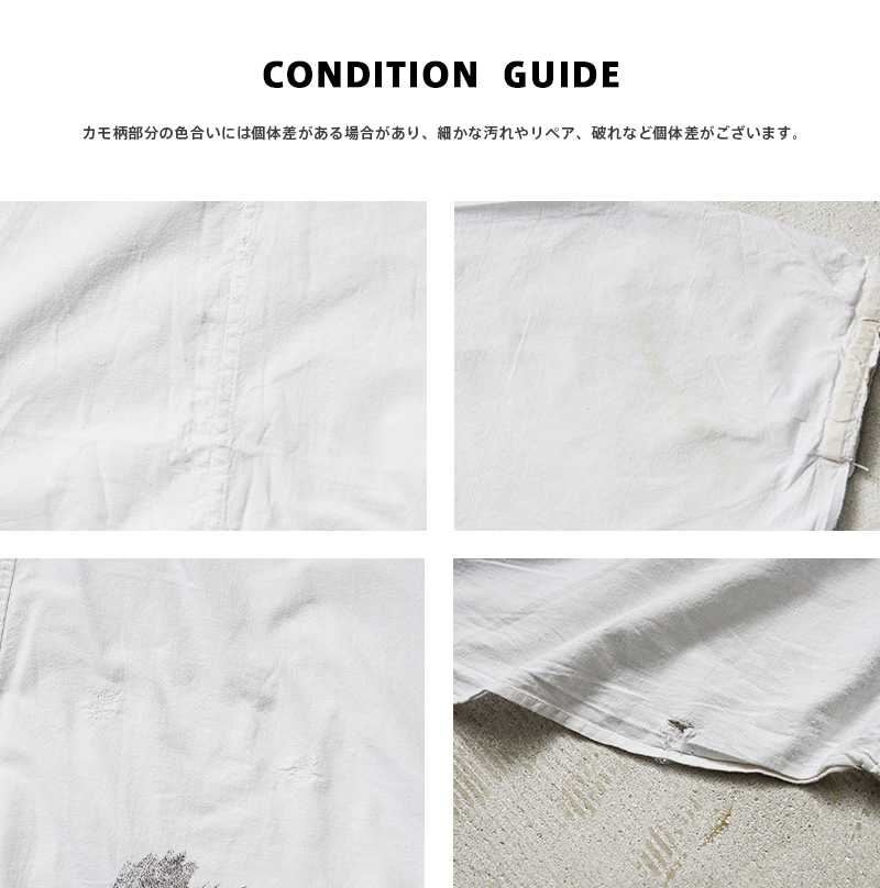 ※カモ柄部分の色合いには個体差がある場合があり、細かな汚れやリペア、破れなど個体差がございます。商品の状態についてご指定いただくことは出来ませんので予めご了承ください。