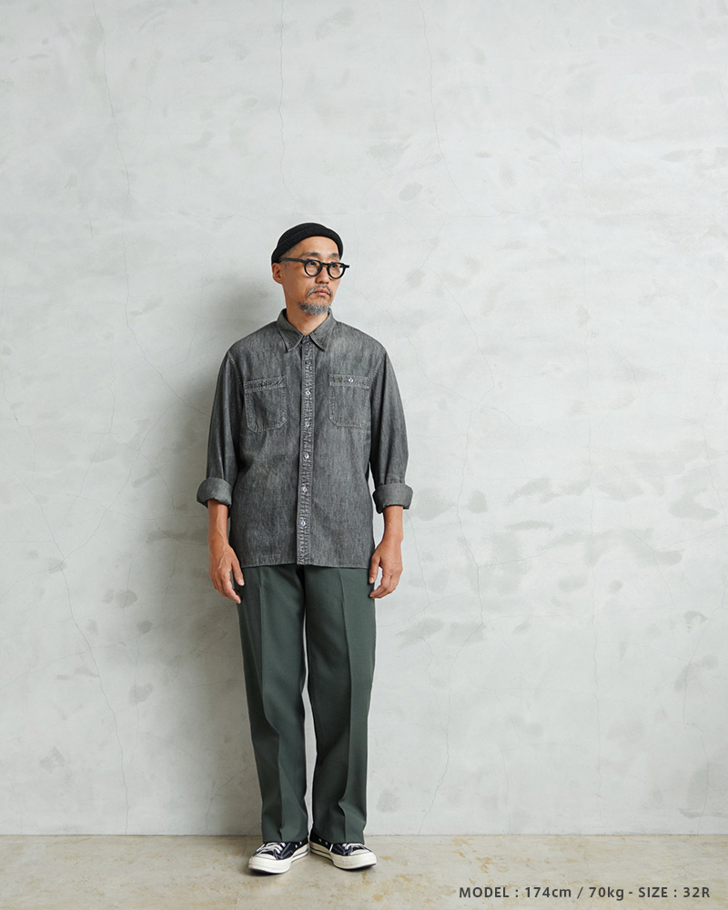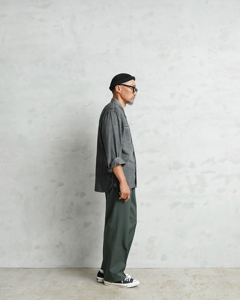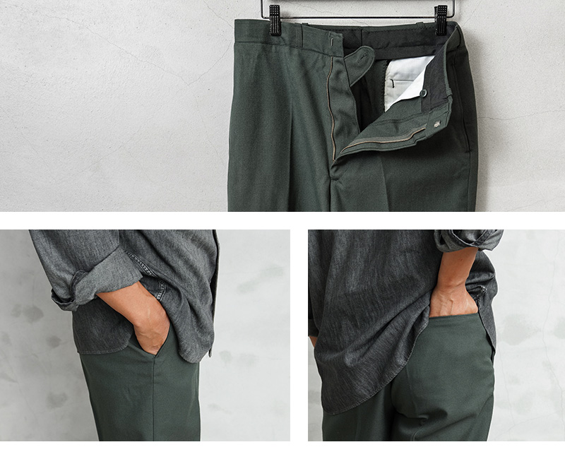 | 備考 | ※画像に関しましては裾を内側に折り込みレングスを調整して着用しております。裾は未処理となっておりますので、お好みでダブル裾など、丈上げしていただくのがおすすめです。 ※実物商品のためサイズに個体差がございます。 |