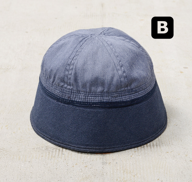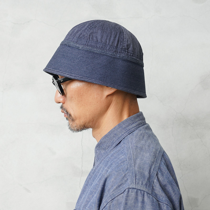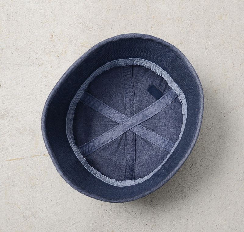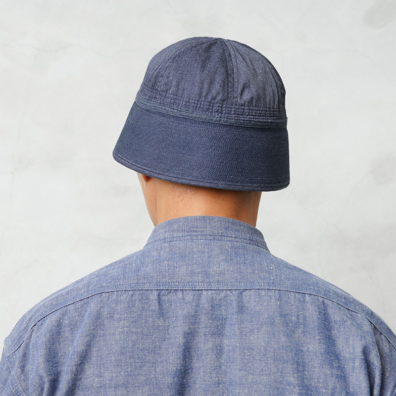 通称ゴブハットと呼ばれる水兵帽として広く認知され、アメリカ海軍で伝統的に着用されるセーラーハットのNAVY染めが登場。“ゴブ”とはセーラーの俗語で本来のツバを折り替えしたルックスをいいますが、ツバをおろして目深にかぶったスタイルは現代のファッションコーデにもマッチします。6パネルクラウンに、強度を高めるためにツバの部分には非常に細かいステッチがはいった堅牢な造り。型崩れの心配もなく、スタイルを維持することが可能です。元々水兵帽らしい特徴的なホワイトカラーだったものを、丁寧に染職人の手によってNAVY染め。よりファッションの一部として取り入れやすくなっています。