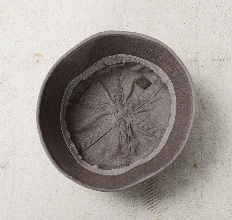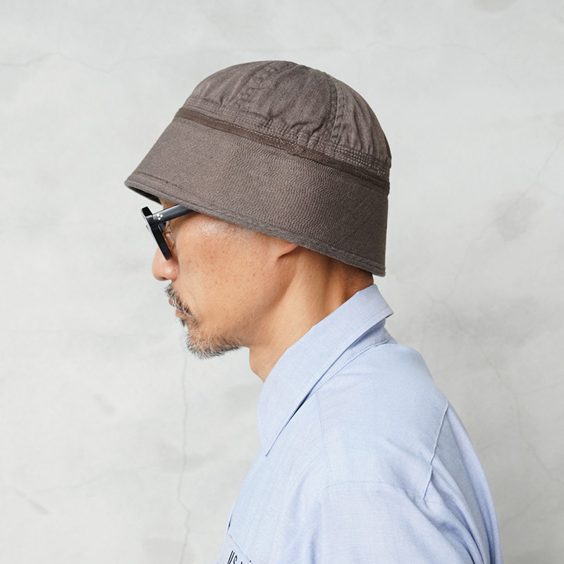 通称ゴブハットと呼ばれる水兵帽として広く認知され、アメリカ海軍で伝統的に着用されるセーラーハットのBROWN染めが登場。“ゴブ”とはセーラーの俗語で本来のツバを折り替えしたルックスをいいますが、ツバをおろして目深にかぶったスタイルは現代のファッションコーデにもマッチします。6パネルクラウンに、強度を高めるためにツバの部分には非常に細かいステッチがはいった堅牢な造り。型崩れの心配もなく、スタイルを維持することが可能です。元々水兵帽らしい特徴的なホワイトカラーだったものを、丁寧に染職人の手によってBROWN染め。よりファッションの一部として取り入れやすくなっています。