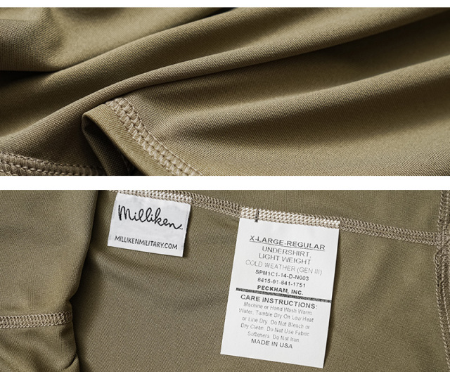 米陸軍のOCPスコーピオン/マルチカム ユニフォームに使用するためのアンダーシャツがデッドストックで入荷いたしました。ECWCS(Extended Cold Weather Clothing System(レイヤリングをすることで様々な気温に対応する極寒冷気候衣料システム))のレイヤリングをする上で重要で基本となるレベル1に該当するアンダーシャツ。速乾性・通気性に優れ、肌から湿気を吸い取り、暖かい天候では蒸発冷却効果を発揮し、寒い天候では断熱効果を提供するシルクタッチ生地。高機能かつ軽量で快適な着心地のアンダーシャツは、シーズンレスに活躍してくれます