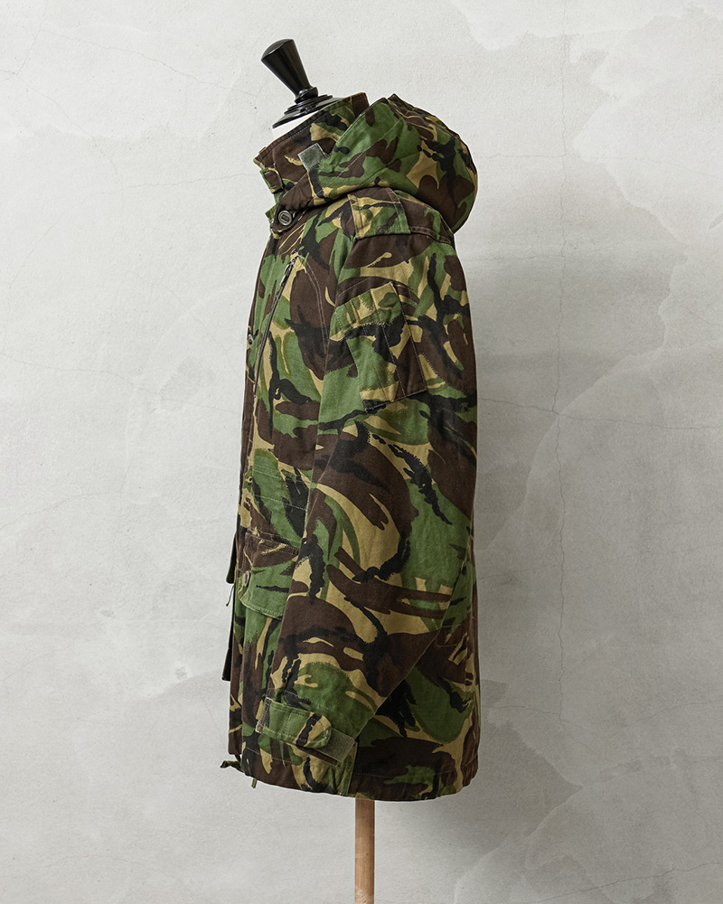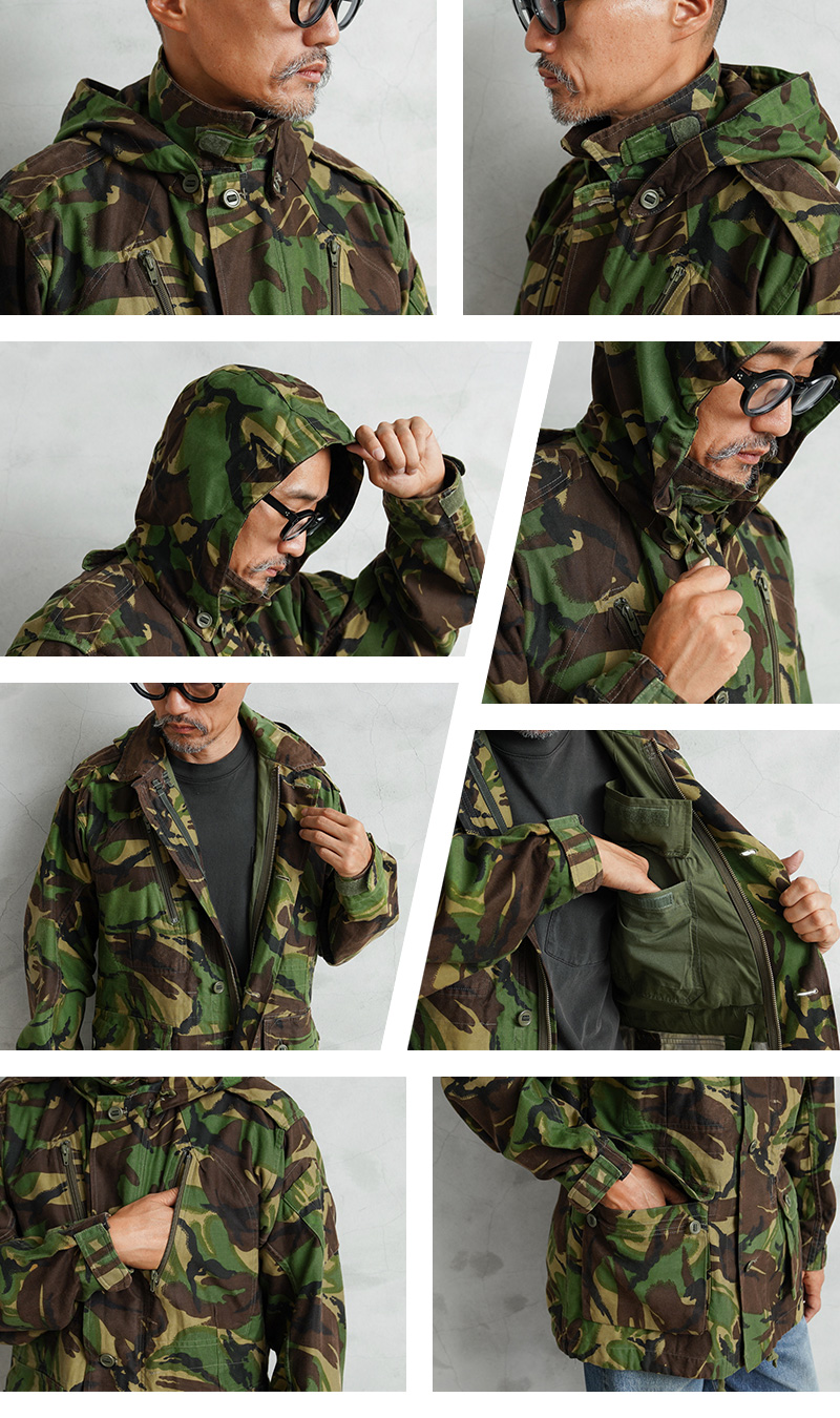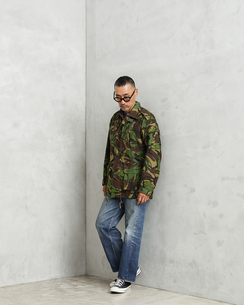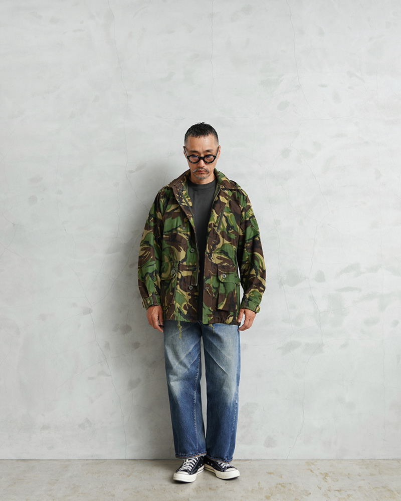1970年代初頭~2000年代にイギリス空軍(RAF=Royal Air Force)で使用されたDPMカモを使用したMK2Aコンバットジャケットが入荷しました。RAFのアイテムでありながらDPMカモというのが珍しく、球数の少なさも相まって放出されることがほとんど無いレアアイテムです!胸元のDポケットのようなジッパー開閉のポケットが特徴で、ウエストにはマチ付きのフラップポケット、左袖には3連のペンホルダー、内側にはベルクロ開閉のフラップポケットと、背面下部にはゲームポットのように使える大型のポケットが備わったデザインです。