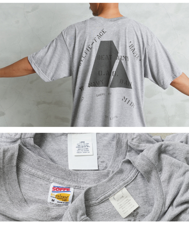 | 商品説明 | WAIPER.inc 実物 USED 米軍 リメイク STENCIL IPFU ARMY ショートスリーブ Tシャツ のご紹介です 昨年ご好評いただいたベートーヴェンのオリジナルイラストに続き、今回は22種類ものステンシルを大胆にプリントしたリメイクTシャツが完成しました。 デザインソースは、アメリカ買い付けの際に出会った1940年代米軍のパジャマシャツ。 当時の兵士がカスタマイズしたであろう「総ステンシル」の雰囲気を再現し、メンズだけでなくレディースにもおすすめのユニセックスな一枚です。 ボディは米軍で採用されていた トレーニングTシャツ をベースに使用。 速乾性に優れたポリエステル素材や綿混素材で仕上げており、さらりとした着心地が魅力です。 さらに、前後のプリントには反射するリフレクターロゴを採用。 早朝や夜間のランニング、アクティブシーンでも視認性を高め、安全性とデザイン性を両立させています。 他の人とは一味違うデザインが、個性を出しつつもコーディネートしやすい一枚です。 |
