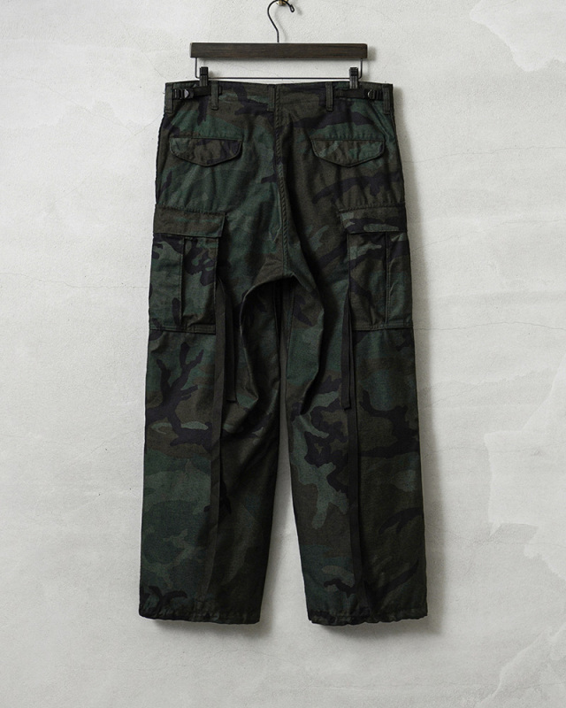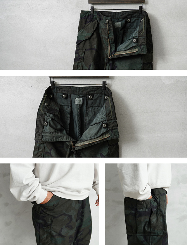 米軍で1965年に採用されたフィールドカーゴパンツは現在ではデッドストックはもとより、USEDでさえも放出されることが無くなっているカーゴパンツのルーツを辿るには外せない希少な名作トラウザーズです。こちらは1981年から2005年頃まで米軍で採用されていたウッドランドカモにガーメントダイを施しました!