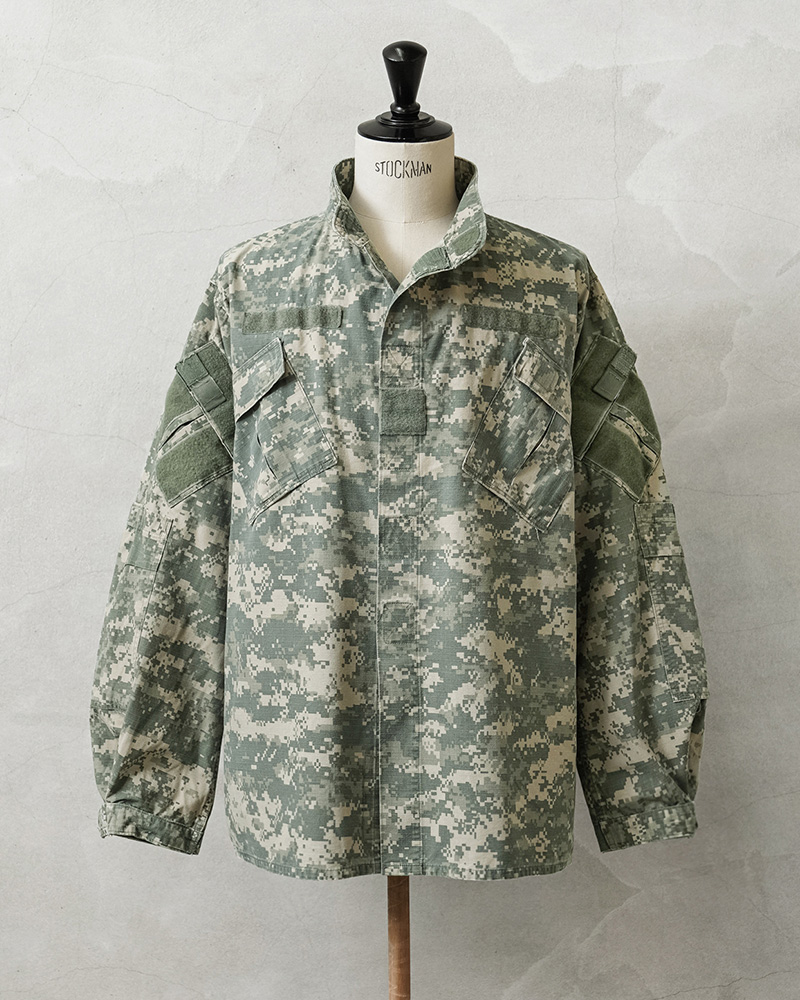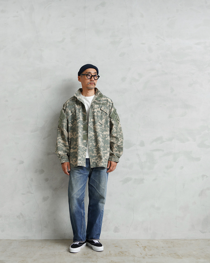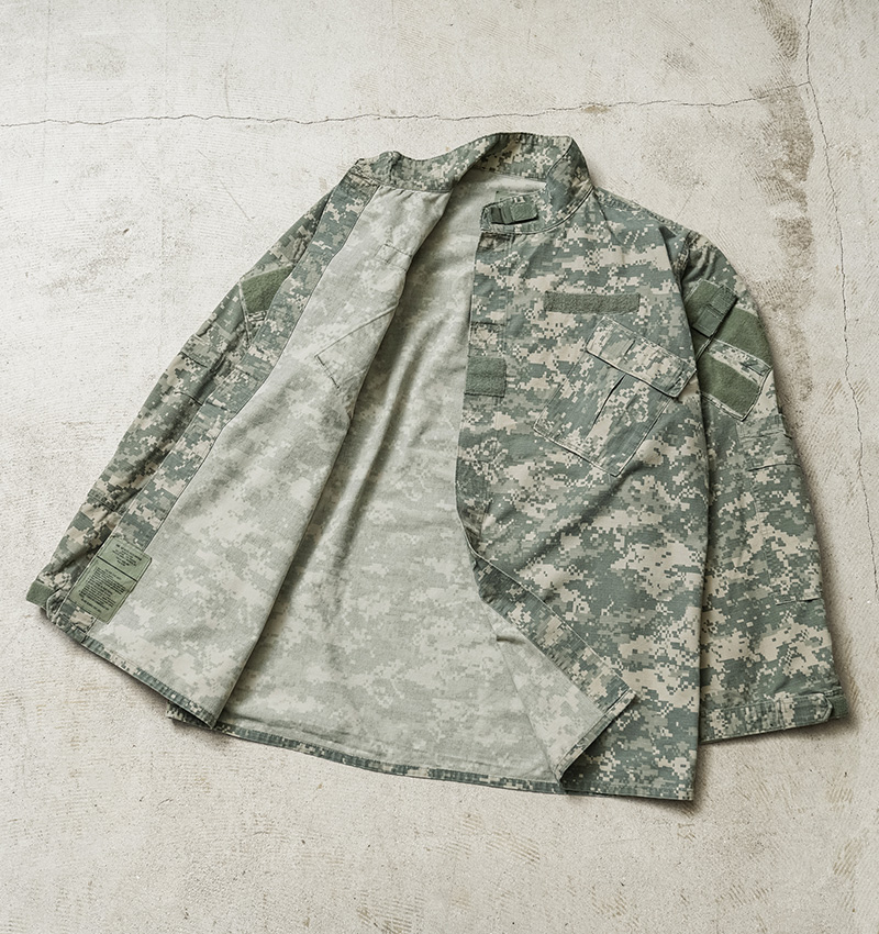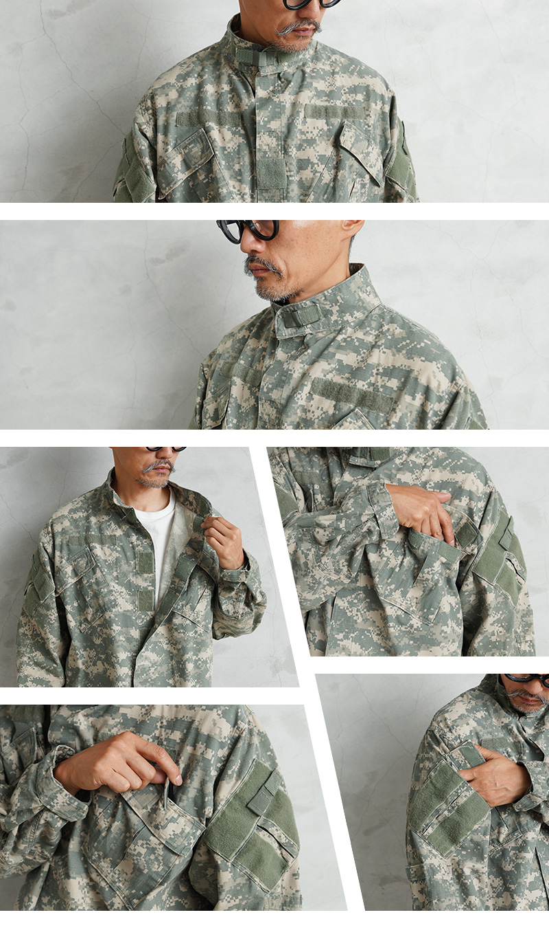 米軍特殊部隊や連邦法執行機関の特殊部隊にプロフェッショナルウェア&ギアを供給していたPARACLETE(パラクレイト)が手掛けた、UCP迷彩の特殊作戦部隊(Special Operations Forces)SOF BDUジャケットです。特殊部隊向けに開発された戦闘服で、一般的なアメリカ軍のBDU(Battle Dress Uniform)をベースにしつつ、より実戦的な改良が加えられています。生地はコットンポリのリップストップを採用し、軍規格に準じた耐久性を実現しています。UCP(Universal Camouflage Pattern)のデジタルカモフラージュは、著名人にも愛用される人気の迷彩パターンです。