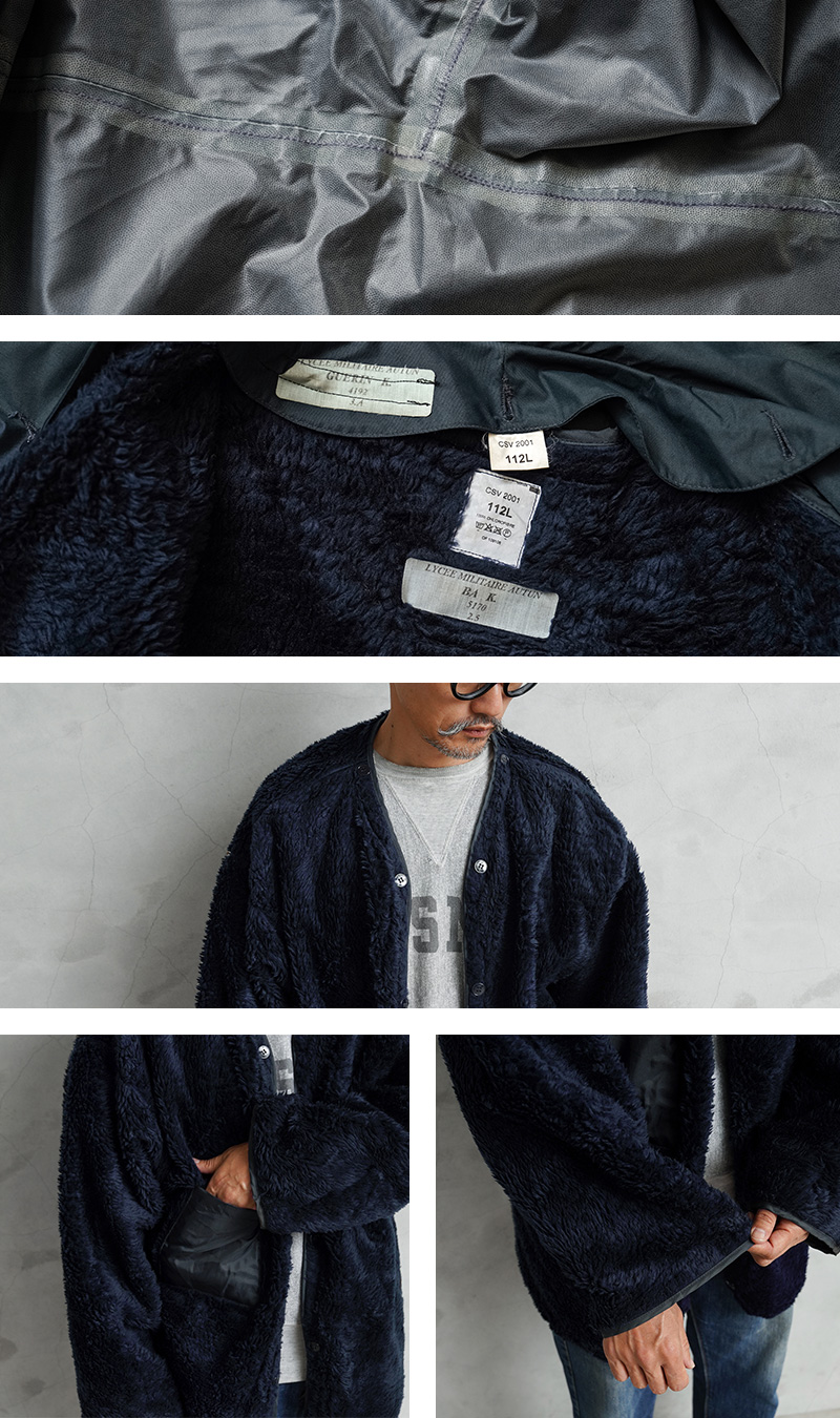 | 商品説明 | リジェクト 訳あり品 実物 USED フランス軍 LYCEE MILITAIRE ウォータープルーフ フィールドパーカー ボアライナー付 タイプBのご紹介です。 フランスのミリタリーアカデミーであるLYCEE MILITAIRE(フランス軍士官学校、軍事高校)で使用されていたボアライナー付きのフィールドパーカーです。 フランス軍のアイテムを数多く納入しているサプライヤーが製造した機能的で高品質な仕上がりです。フロントはスナップボタンとジッパーで開閉する仕様で、襟元に収納可能なフードが備わっており、フードに繋がる調節可能なドローコードが付属しています。 ウエスト部分には2つのフラップポケットと、ボアライナーを取り付けた状態でしたら、インナーポケットも付属します。シェルの縫製部分には内側からシームテープで防水処理が施されていますので雨風が侵入しにくい仕様となっています。 シェルの内側に取り付ける防寒用のライナーは、単体で着た際にもデザイン性が高いことから、アウターとしての着用はもちろん、コートやジャケットなどのライナーとしても便利なアイテムです。品のあるNAVYカラーに、ライナーに縁取られたパイピングやポケットの配色もセンスの良さを感じさせるデザイン。 ライナーとして取り付けた際には内側になるアクリルボアが非常に暖かく、ボアライナーをアウターとして使用する際には裏返してアクリルボアを表にして着用しても見た目の雰囲気が良く、羽織としてコーディネートしていただけば着こなしの幅も広がります。 透湿性や防寒性にも優れた、性別問わず着ていただけるフィールドパーカー&ボアライナーです! ファスナー不良やドローコード抜けや破損、ボアライナーのボア抜け、激しい汚れなどの全体的に不具合のある商品を選別しております。多少のリペアを施していただいてからの着用、もしくはリメイク資材としてもおすすめです。ファーストクオリティの品質を強くお求めの方は念の為ご購入をお控えくださいますようお願い致します。 |