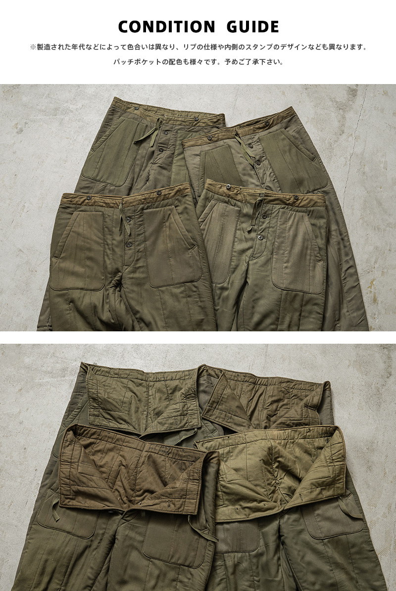 | 商品名 | WAIPER.inc 実物 USED チェコ軍 M-60 ライナー リメイク パンツ ポケット付き | |||||||||||||||||||||||||