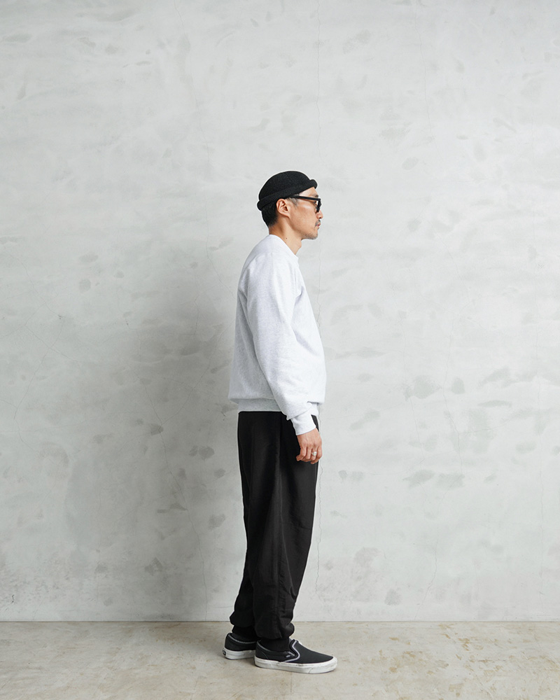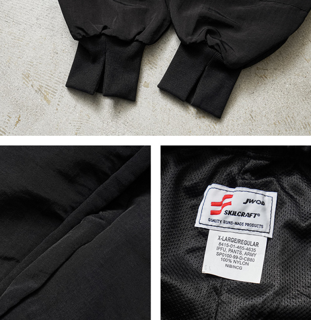 米軍実物の米陸軍(U.S.ARMY)において採用、支給されていたフィジカルトレーニング用のPFU(PHYSICAL FITNESS UNIFORM)トレーニングパンツです。X-LARGE-REGULARという大きめサイズのボディを使用し、大胆に裾をカット。ボリュームのあるシルエットを活かし、裾部分はジョガーパンツらしいリブ仕様にリメイクを施しました。リブにはスリットを入れることで足入れがスムーズになり、ソックスインスタイルも自然に楽しめます。裾リブを見せるように着用するのも良いですし、気分に合わせて毎日違ったアレンジを楽しめる万能ディテールです。