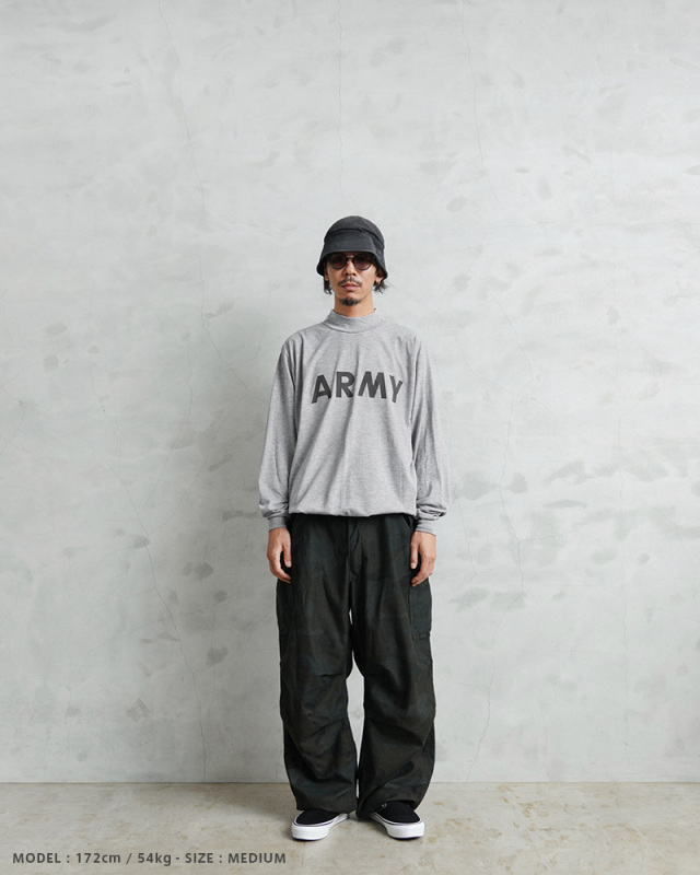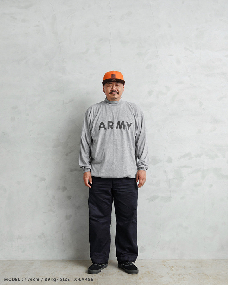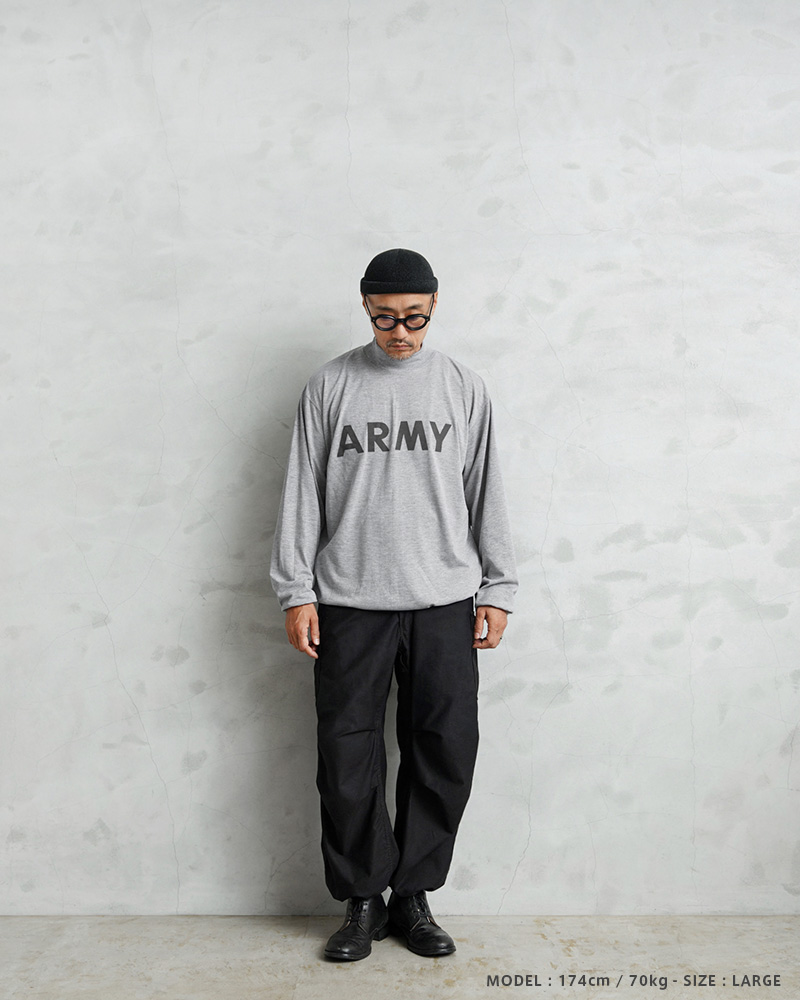 | 商品説明 | WAIPER.inc 実物 新品 米軍 リメイク IPFU ARMY ロングスリーブTシャツ 裾ドローコードのご紹介です。 制式名称:T-SHIRT,L/S,PHYSICAL FITNESS UNIFORM(IPFU) 米軍で採用されていたトレーニングTシャツを着用しやすい着丈にカットし、裾部分にドローコードを追加したリメイクを施しました!裾が袋状になるまで絞れますので、お好みのシルエットや丈感にアレンジするなど、多彩な着こなしがお楽しみいただけます。 速乾性に優れ、サラッとした着心地のポリエステル生地を使用しています。体から放出される熱や汗を生地が調整することで寒暖に関係なく快適な着心地を実現しています、とても柔らかく肌触りも良い素材です。 モックネックタイプのネックラインで、1枚で着てもすっきりとした印象を与え上品さも感じさせます。インナーとしても、首周りがバランス良く仕上がっていますので幅広く着回せておしゃれに着こなせます! フロントにはARMYのロゴ、バックにはARMYの「A」をかたどったブロークンピラミッドのリフレクタープリントが施されていますので、夜間や早朝のトレーニングや自転車、バイクでも視認性を高めます。 胴周りを1枚の布で仕上げた丸胴仕様で、サイドに縫製を無くすことで素肌へのストレスを軽減しています。側面に縫い目がないので、Tシャツが肌に触れないため、着心地が良いというメリットがあります。 使用用途はトレーニング、ルームウェア、普段着など様々な場面で活躍します。近年では入荷することが稀になってきた、速乾性にも優れたトレーニングTシャツです。 |