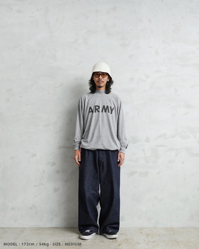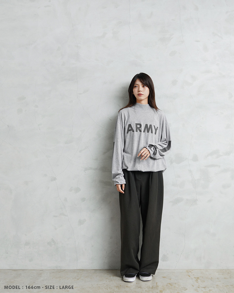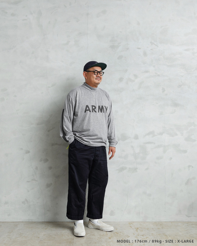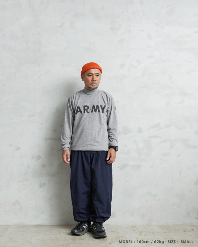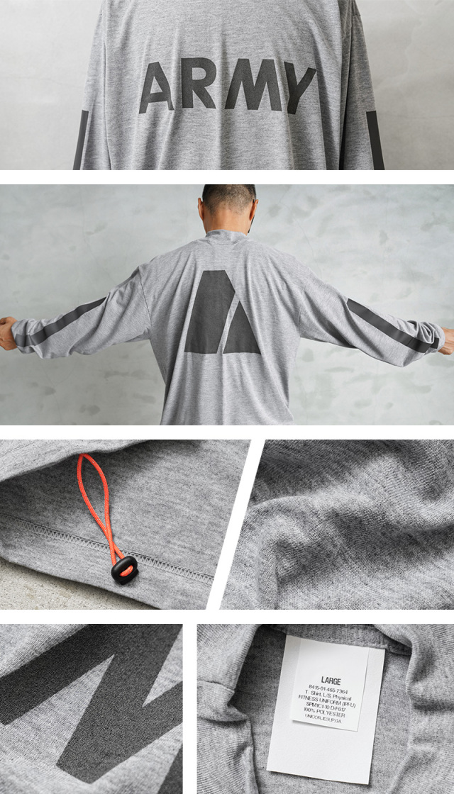 | 商品説明 | WAIPER.inc 実物 新品 デッドストック 米軍 リメイク IPFU ARMY ロングスリーブTシャツ リフレクターライン & ネオンドローコードのご紹介です。 制式名称:T-SHIRT,L/S,PHYSICAL FITNESS UNIFORM(IPFU) 米軍で採用されていたトレーニングTシャツの袖にしっかりと光を反射するリフレクターラインのプリントを追加し、デザイン性と機能性をUP! さらに、着用しやすい着丈にカットし、裾部分の両サイドにネオンカラーのドローコードを配置したリメイクを施し、サイドから見えるコードが良いアクセントになっています。お好みのシルエットや丈感にアレンジするなど、多彩な着こなしがお楽しみいただけます。 速乾性に優れ、サラッとした着心地のポリエステル生地を使用しています。体から放出される熱や汗を生地が調整することで寒暖に関係なく快適な着心地を実現しています、とても柔らかく肌触りも良い素材です。 モックネックタイプのネックラインで、1枚で着てもすっきりとした印象を与え上品さも感じさせます。インナーとしても、首周りがバランス良く仕上がっていますので幅広く着回せておしゃれに着こなせます! フロントにはARMYのロゴ、バックにはARMYの「A」をかたどったブロークンピラミッドのリフレクタープリントが施されていますので、夜間や早朝のトレーニングや自転車、バイクでも視認性を高めます。 胴周りを1枚の布で仕上げた丸胴仕様で、サイドに縫製を無くすことで素肌へのストレスを軽減しています。側面に縫い目がないので、Tシャツが肌に触れないため、着心地が良いというメリットがあります。 使用用途はトレーニング、ルームウェア、普段着など様々な場面で活躍します。近年では入荷することが稀になってきた、速乾性にも優れたトレーニングTシャツです。 |