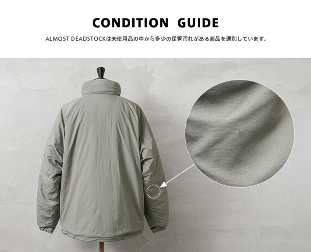 ※コンディションBは未使用品の中から多少の保管汚れがある商品を選別しています。入荷時期によりタグにマジックで線や文字が書いてあるものもございますが、新品未使用品に間違いございません。GEN IIIやプリマロフトのタグがないものも混在しております。商品の状態についてご指定いただくことは出来ませんので予めご了承ください。