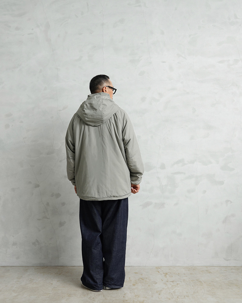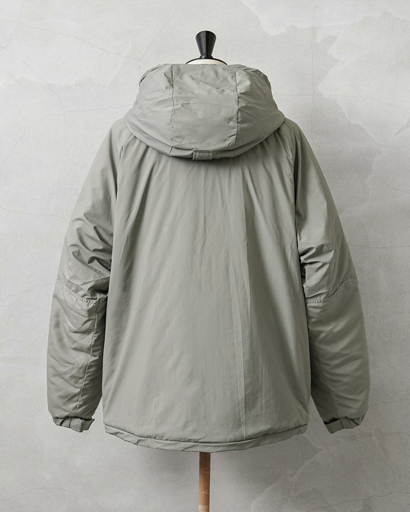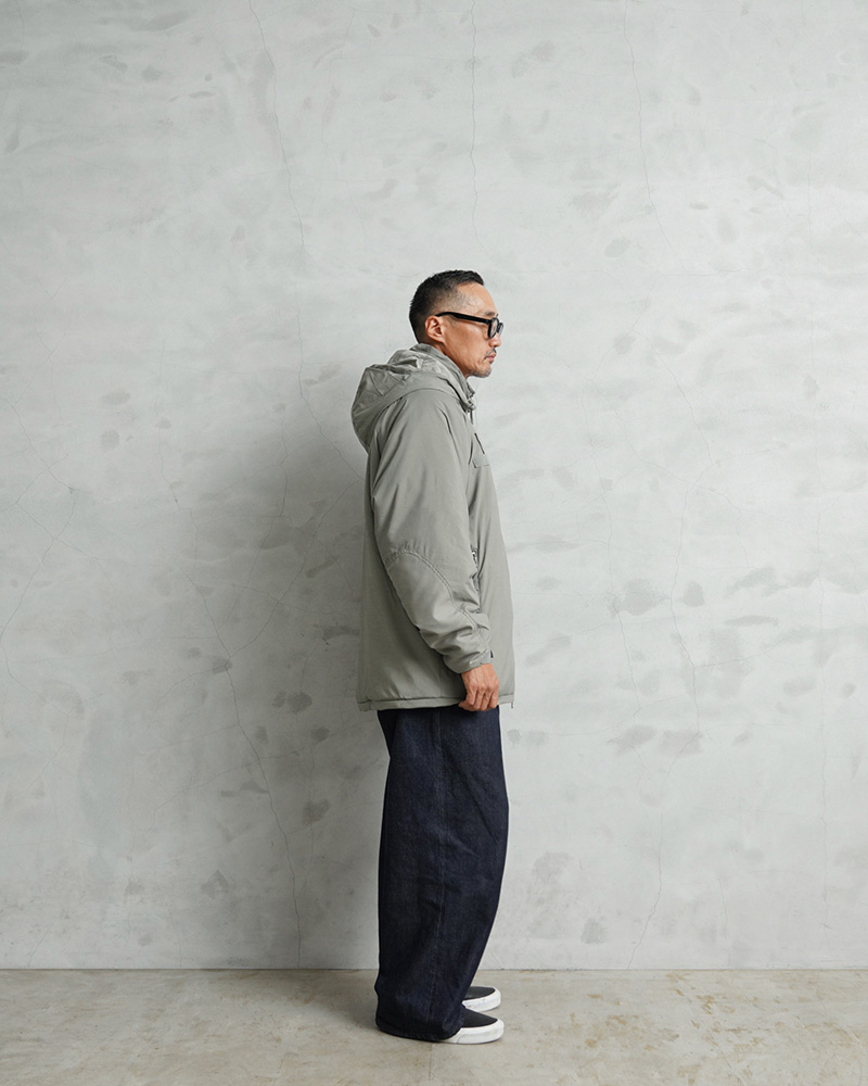 | 素材 | シェル:PLAIN WEAVE NYLON(軽量透湿通気性超撥水生地) 中綿:PRIMALOFT(プリマロフト) |