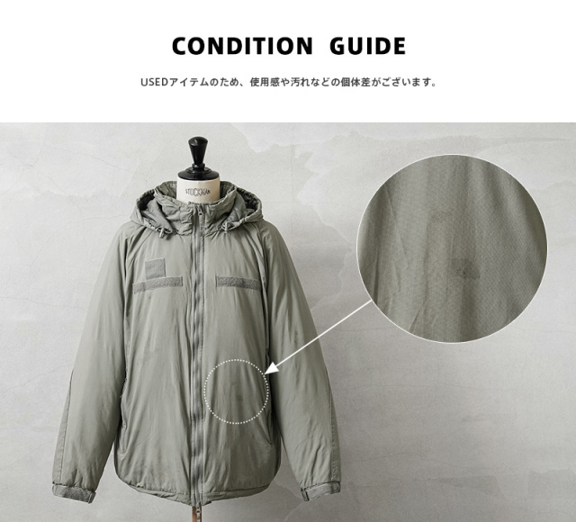 | 商品状態 | 軍放出のUSED ※USEDアイテムのため、使用感や汚れなどの個体差がございます。GEN IIIやプリマロフトのタグがないものも混在しております。商品の状態についてご指定いただくことは出来ませんので予めご了承ください。 |