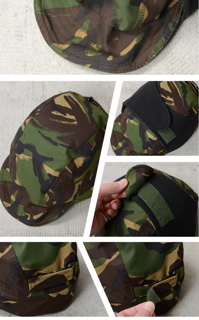 イギリス軍より極寒・多雨の気象条件下において、厳しい環境から兵士を守るために支給されたウィンターキャップが登場しました。 高い防水性と透湿性が特徴のゴアテックスのような機能を持つ生地「MVP(Moisture Vapour Permeable)」を採用。 フリース裏地付き、先端がワイヤー入りで調節可能なサンバイザー、ウシャンカ型の耳当てが備わっており防寒性もさることながら、着用シーンやコーディネートによって雰囲気を変えて幅広く楽しむことができます。アウトドアやミリタリーファッションに最適な、機能性とデザイン性を兼ね備えた防寒キャップ。クラシックなカモフラージュ柄が目を惹き、ファッションのアクセントとして活躍する男女共におすすめのキャップです。