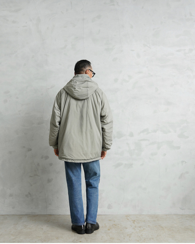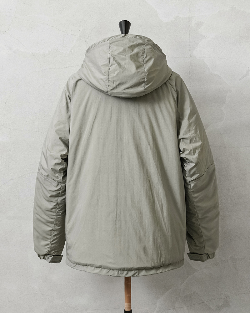 | 素材 | シェル:PLAIN WEAVE NYLON(軽量透湿通気性超撥水生地) 中綿:PRIMALOFT(プリマロフト) |