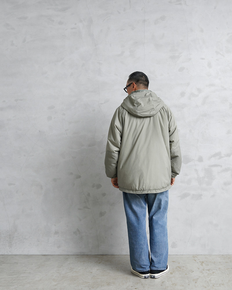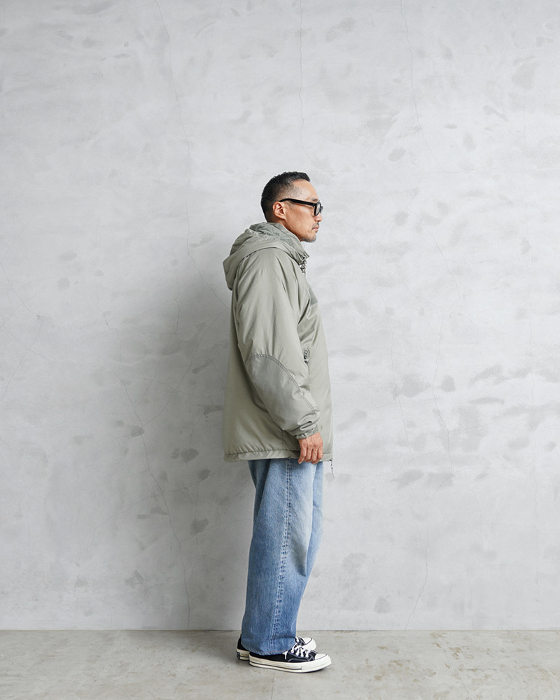 | 素材 | シェル:PLAIN WEAVE NYLON(軽量透湿通気性超撥水生地) 中綿:PRIMALOFT(プリマロフト) |