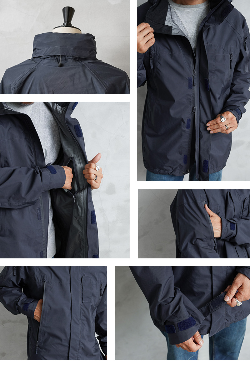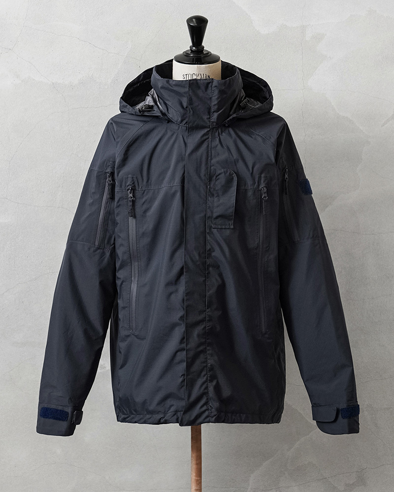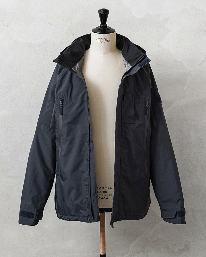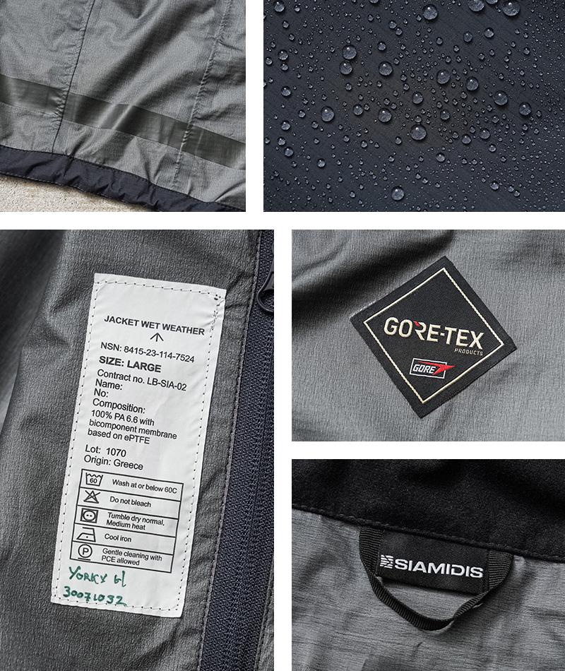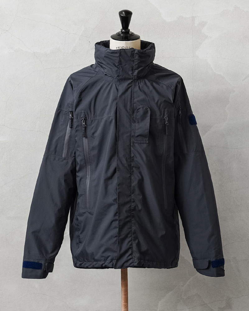 イギリス海軍(ROYAL NAVY)において、悪天候下での作業や任務時に採用されている防水・防風・透湿性を兼ね備えたGORE-TEX(ゴアテックス)ジャケットです。過酷な海上環境での使用を前提に設計された、ミリタリーウェアの中でも非常に高い防護性能を誇る一着となっています。ギリシャのSIAMIDIS社がコントラクターとしてイギリス海軍へ納入したGORE-TEXジャケットです。タウンユースからアウトドアまで幅広く対応し、機能性とデザイン性を兼ね備えた一着です。