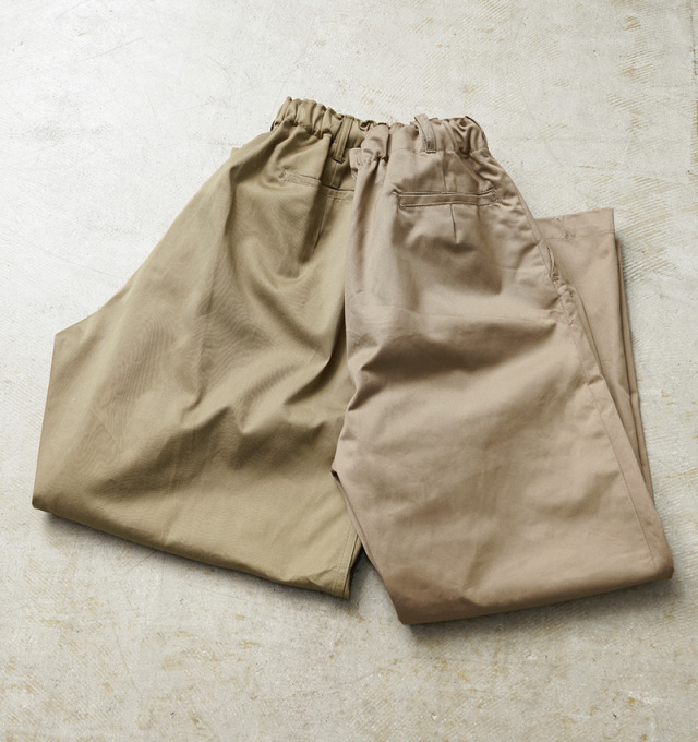 ギリシャ軍から1990~2000年代を中心に製造された実物のチノパンツです。裾未処理の状態で放出されるアイテムですが、長いレングスをカットして裾の処理を行い、ウエストにゴムとドローコードを入れてイージートラウザーズ仕様にリメイクを施しました!幅広いウエストに対応できるフリーサイズで、ベルトレスでストレスなく穿くことができます。古くからギリシャ軍で採用されている伝統的なアイテムの一つで、上品な光沢感があり、柔らかな穿き心地なので暖かい季節でも着用できる素材感。ライトオンスのチノクロスが使用されたベーシックなデザインのチノトラウザーズです。