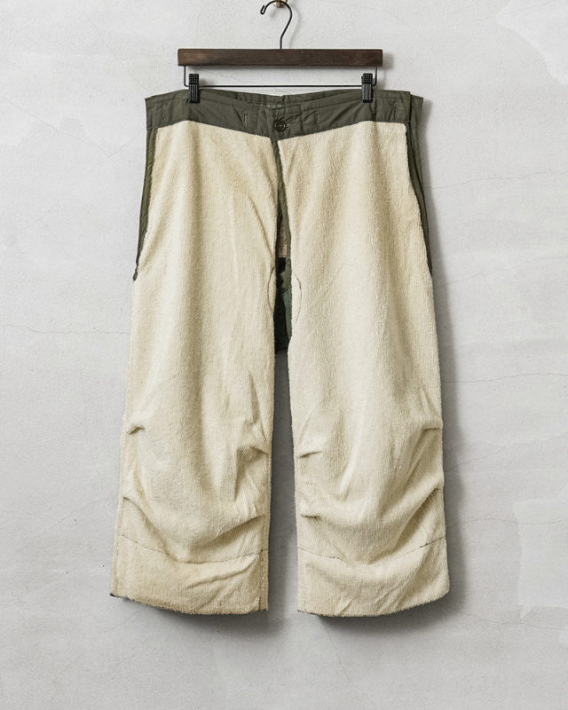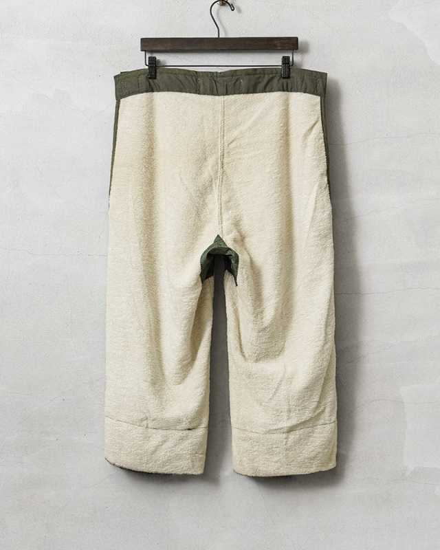 | 商品説明 | リジェクト 訳あり品 希少 実物 USED 米軍 M-51 アークティック オーバーパンツ用ライナーのご紹介です。 制式名称:LINER,TROUSERS,ARCTIC,M-1951 米軍で1951年に採用されたM-51 アークティック オーバーパンツ用ライナーのパイル地に織られた仕様を発見できました。現在では入手困難となってしまったアークティック オーバーパンツですが、そのパンツ本体と同様に現存数が少ないのがライナーなんです! このライナーを装着することで防寒性能をアップし、防寒衣料としての機能を100%発揮するようにデザインされています。素材にはウールを使用し、適切な温度に保つように機能しますので体温調節にも役立ちます。 寒いときはウールが体を暖かく保ち、暖かい季節には、ウールが体の呼吸を助け、涼しさを保ちます。その他にも抗菌・防臭効果や燃えにくく、湿気を吸収し型崩れしにくいなど機能性に優れている素材です。 ODカラーの裏地はリップストップナイロンが使用されています。M-51 アークティック オーバーパンツ用ライナーとして使用する場合はナイロンの部分が内側になり、パイル生地を外側にして取り付けます。 現存数は増えることはありませんので、今後ますます高騰&希少性が高まること間違い無しの逸品です。 既製品には出せない、雰囲気がたまらないヴィンテージアイテムです。 目立つ汚れや破れ、テープ跡、ボタン欠損などの全体的に不具合のある商品を選別しております。多少のリペアを施していただいてからの着用、もしくはリメイク資材としてもおすすめです。ファーストクオリティの品質を強くお求めの方は念の為ご購入をお控えくださいますようお願い致します。 |