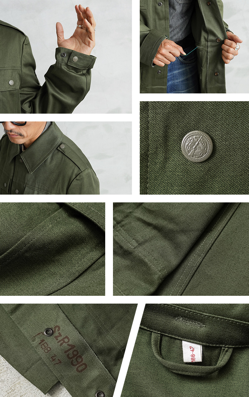 | 商品説明 | 実物 新品 デッドストック ハンガリー軍 グランドフォースジャケットのご紹介です。 ハンガリー軍で1980~90年代を中心に多く使用されていたジャケットが入荷しました。 コットンサテンが使用された、フィールドジャケットに適した質感の耐久性に優れた素材です。スナップボタン開閉のフロントに、4ポケットデザインのグランドフォースジャケットは、着丈長めのデザインなのでコート感覚で軽く羽織ってコーディネートにプラスできる雰囲気のあるアイテムです。 袖口はスナップボタンで開閉し、調節も可能。ウエスト内側にはドローコード付きでシルエットに変化を持たせることができます。アームホールは太すぎずバランスの良い一着です。 シンプルでミリタリージャケットらしいデザインが幅広いスタイリングに活躍するアイテムで、未使用デッドストックでの放出はなかなか無い、ハンガリー軍のジャケットです! |