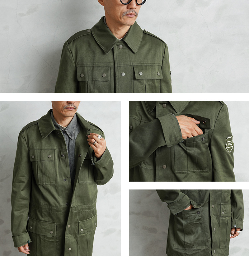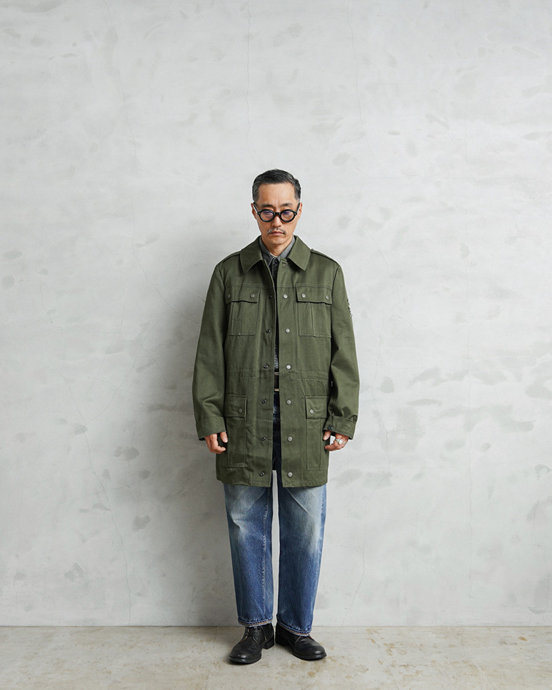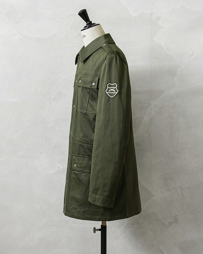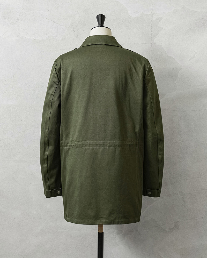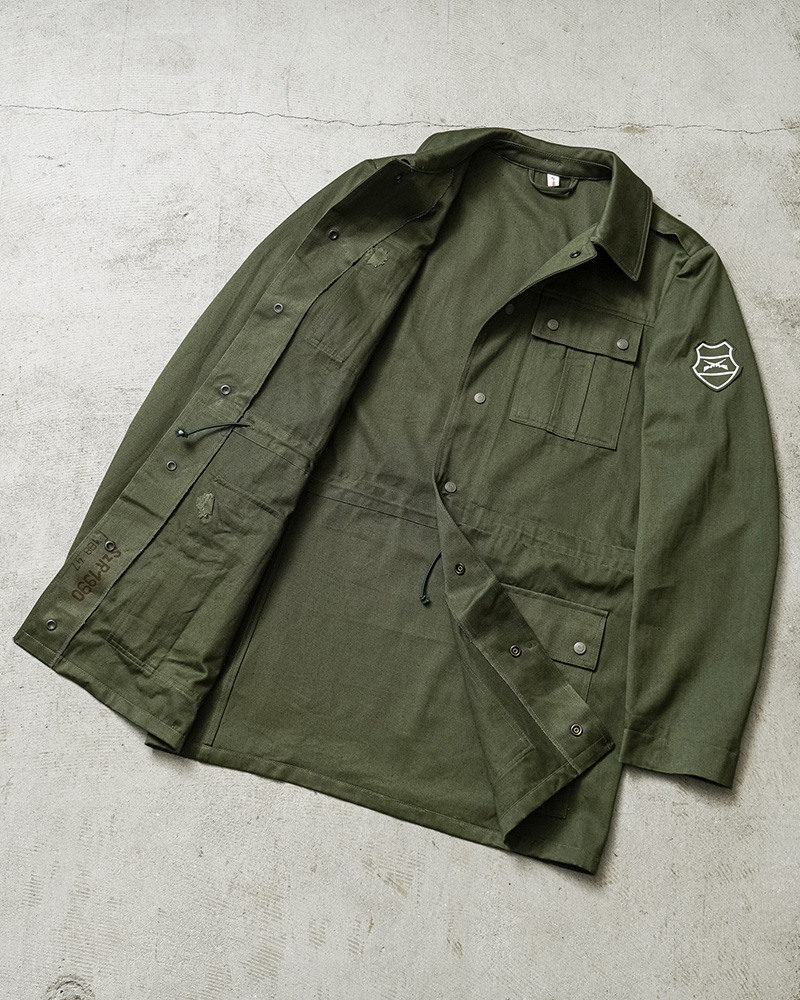 ハンガリー軍で1980~90年代を中心に多く使用されていたジャケットが入荷しました。コットンサテンが使用された、フィールドジャケットに適した質感の耐久性に優れた素材です。スナップボタン開閉のフロントに、4ポケットデザインのグランドフォースジャケットは、着丈長めのデザインなのでコート感覚で軽く羽織ってコーディネートにプラスできる雰囲気のあるアイテムです。袖口はスナップボタンで開閉し、調節も可能。ウエスト内側にはドローコード付きでシルエットに変化を持たせることができます。アームホールは太すぎずバランスの良い一着です。