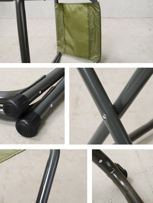 米軍で使用されている軽量設計の折りたたみスツールが登場しました。コンパクトに収納できるよう脚部を折りたたむことができ、非常に軽く、女性でも片手で簡単に持ち運び可能。 太目のパイプ部分、丈夫な座面で安定感のある座り心地を実現しています。脚先にはしっかりとしたゴム製のグリップキャプが付属しており床を傷つけることなく、フローリングでの使用も安心です。車やガレージに備えておいて、キャンプなどのアウトドア、バーベキューなどでの活用はもちろん、フォールディングデスクと組み合わせたり、お店やリビングのインテリアとしてもおススメの実用性抜群のサープラスアイテムです。