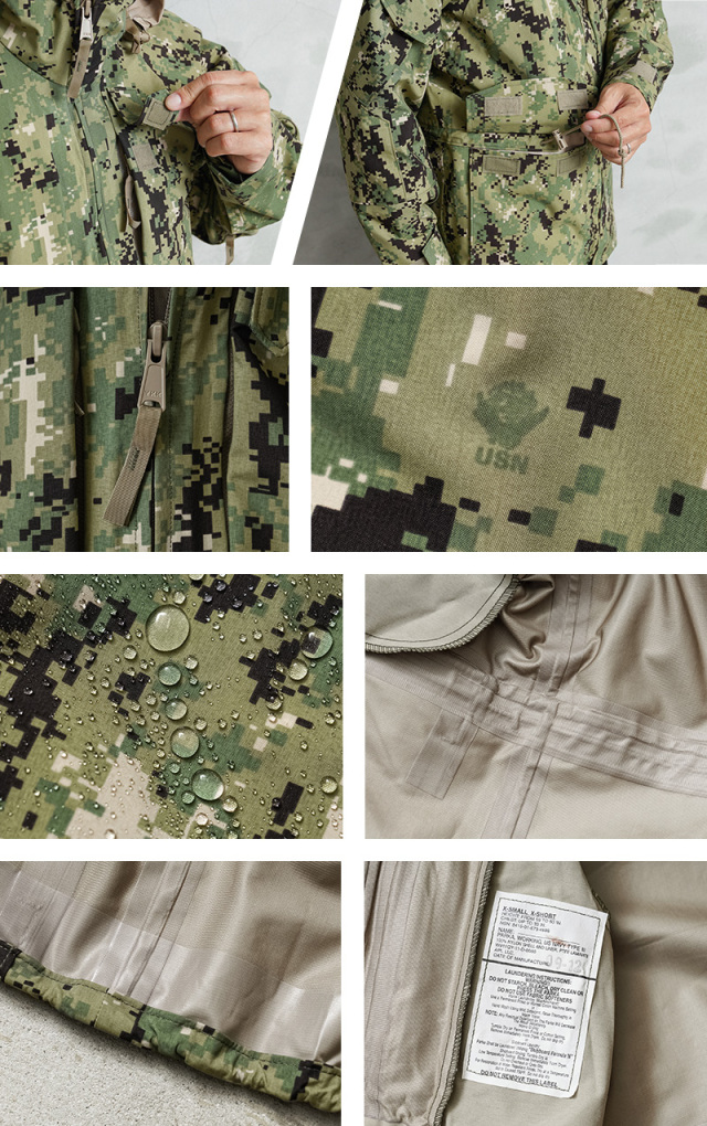 米海軍特殊部隊SEALsやEODなど、海軍の陸上戦闘部隊で現在採用されているECWCS GORE-TEXパーカーが登場。こちらのサイズが着用可能な方にはお得にご購入いただけるプライスのページになります。2010年頃より採用が開始された第2世代のNWU (Navy Working Uniform) のTYPEIII AOR2は、レイヤリングをすることで様々な気温に対応する極寒冷気候衣料システムであるECWCS(Extended Cold Weather Clothing System)のGen1、Gen2で言えばレイヤー4、Gen3で言えばレベル6に該当するジャケットです。
