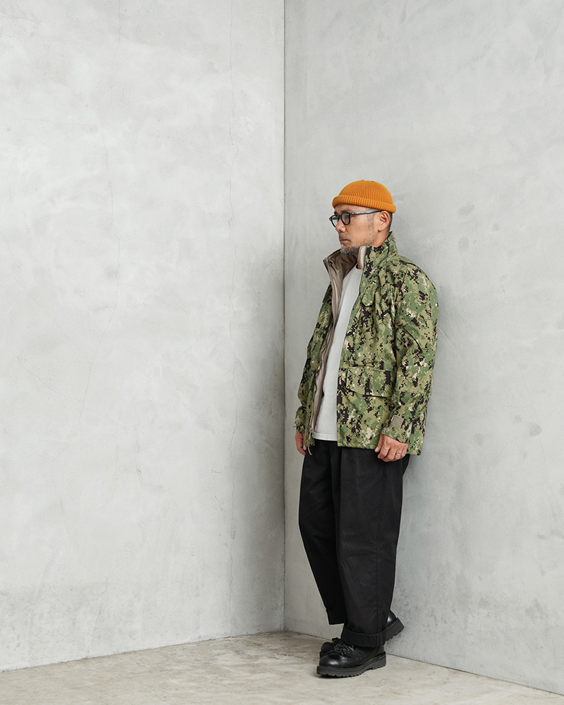 | 商品説明 | 実物 新品 デッドストック 米海軍 NWU GORE-TEXパーカー TYPEIII AOR2 のご紹介です。 制式名称:PARKA,WORKING,US NAVY TYPE III 米海軍特殊部隊SEALsやEODなど、海軍の陸上戦闘部隊で現在採用されているECWCS GORE-TEXパーカーが登場。こちらのサイズが着用可能な方にはお得にご購入いただけるプライスのページになります。 2010年頃より採用が開始された第2世代のNWU (Navy Working Uniform) のTYPEIII AOR2は、レイヤリングをすることで様々な気温に対応する極寒冷気候衣料システムであるECWCS(Extended Cold Weather Clothing System)のGen1、Gen2で言えばレイヤー4、Gen3で言えばレベル6に該当するジャケットです。 米軍のGORE-TEXパーカーと言えばウッドランド迷彩のGen1パーカーが代名詞ですが、こちらの後継モデルであるGen2パーカーは更に改良され進化を遂げたハイスペックモデル。 完全防水・通気性生地のGORE-TEXを使用し、錆びない樹脂製のYKK止水ジッパーで、縫い目にシームテープが貼られた高い防水性。ボタンは極力使用せず、ポケットなどにベルクロを多用し利便性を向上、襟はスタンドカラーで、Gen2パーカーはフード収納式になっています。 森林地帯での使用を想定した迷彩のウッドランド・デジタル・カモフラージュ柄で、ストリートに馴染みやすい垢抜けた印象。申し分の無い機能性と近代的なデザインが、ディリーからアウトドアまで幅広く網羅してくれ、コーディネートにも映える一着です。 放出が稀で、希少な現行サープラスアイテムをお見逃しなく。 |